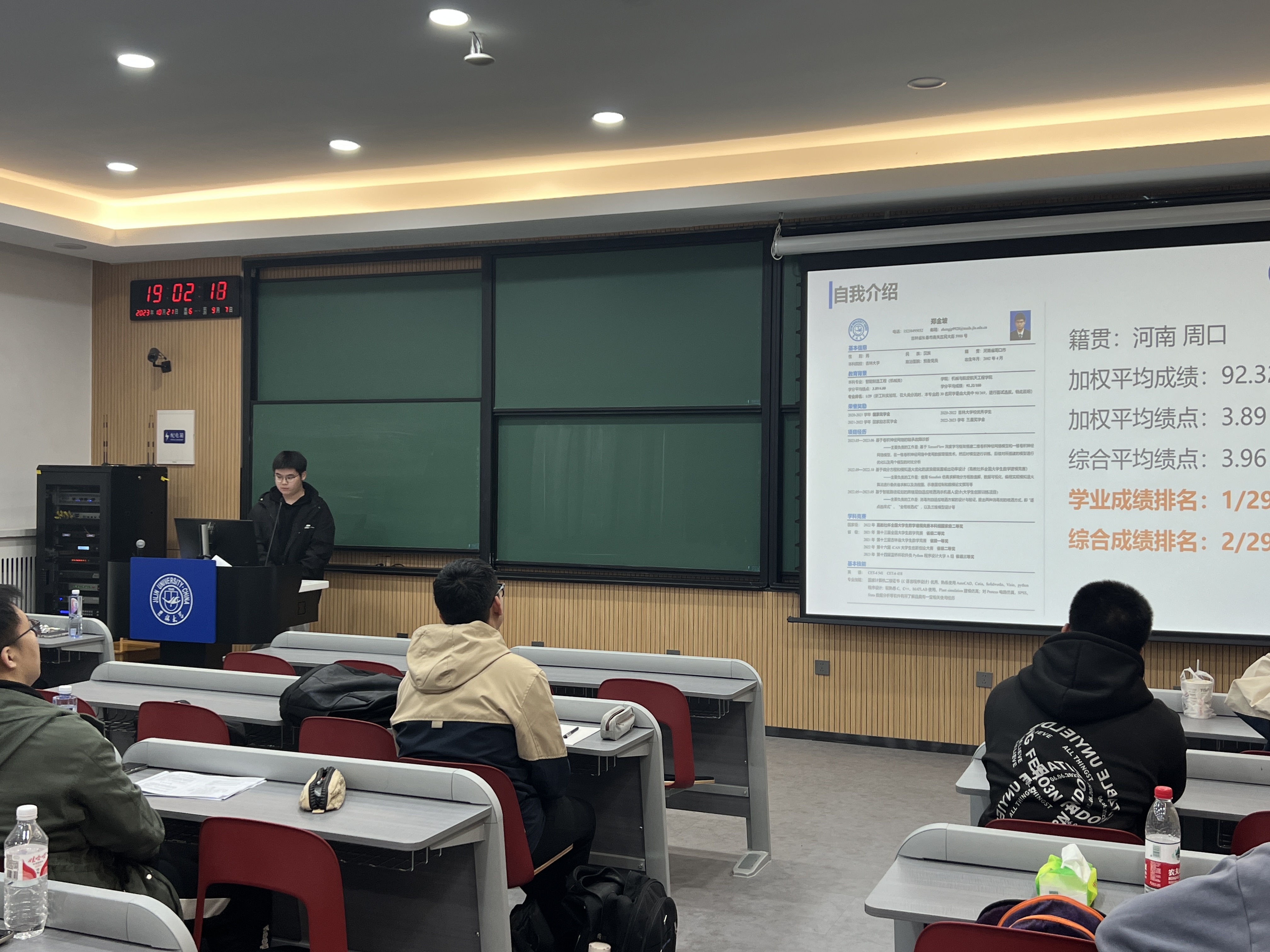活动中,郑金坡从课程学习、科研竞赛、保研推免三个方向分享他在大学生活中的成长经验。他讲到,学习成绩是大学生活的基础,课程学习不仅要打牢专业课程的知识,还要对专业课程的书本知识进行实践检验。科研竞赛是书本知识和人际交往上的突破,从竞赛中不但可以将知识进行高强度输出,也可以在团队协作中增强与人沟通的能力。这两部分,相互补充、相互促进,丰富我们的大学学习生活,为保研推免保驾护航。