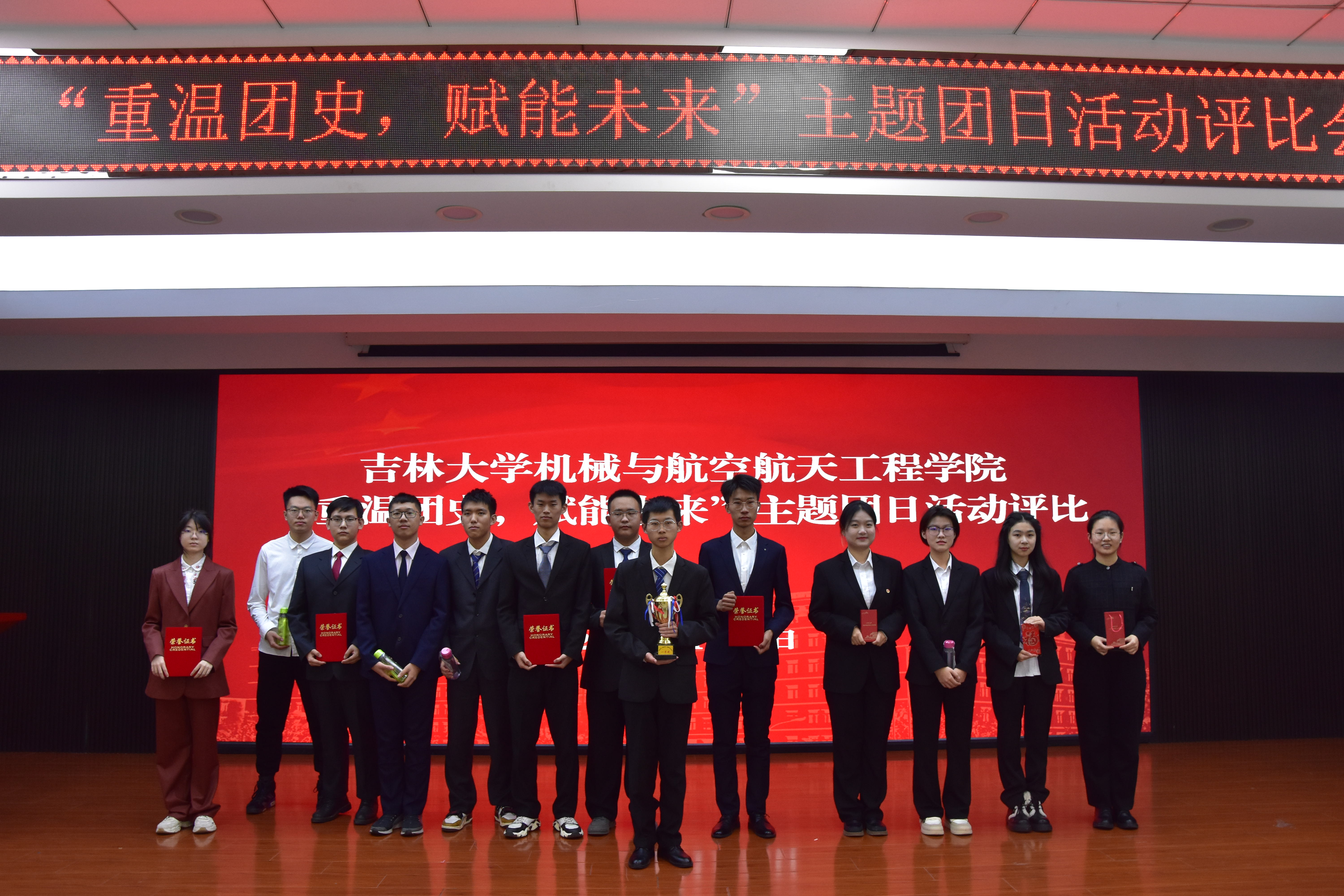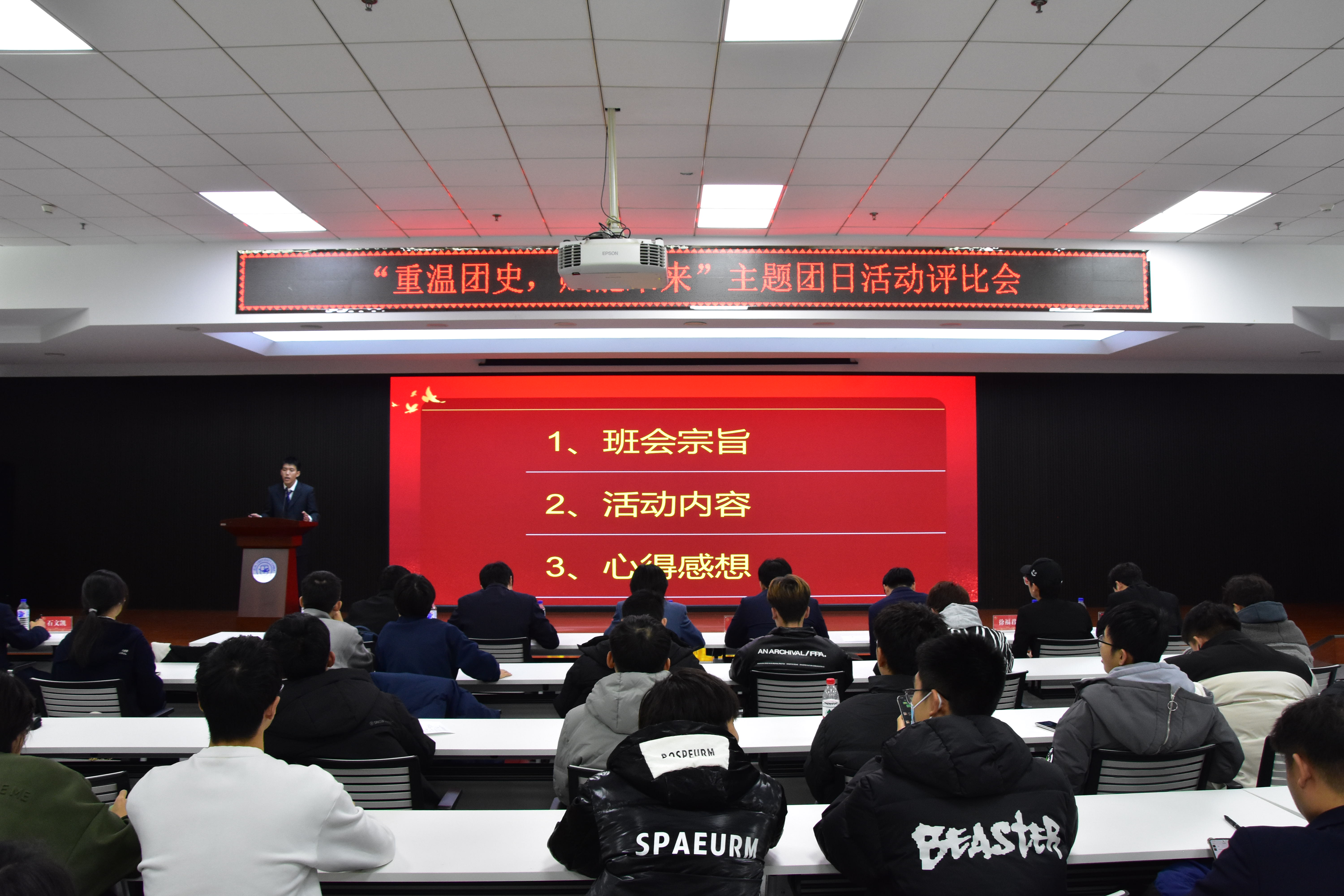 活动中,各班团支书将团日活动内容以幻灯片形式进行汇报展示,活动内容丰富、形式多样,引起同学们的热烈讨论和强烈情感共鸣。活动现场,评委逐一为各班团支部进行打分,并在现场为获奖团支部颁奖。活动的最后,石文凯同学对“重温团史,赋能未来”主题团日活动进行总结,并鼓励各团支部紧紧抓住寒假时间段,提前布局社会实践活动,深入社会增长能力、磨砺性情。