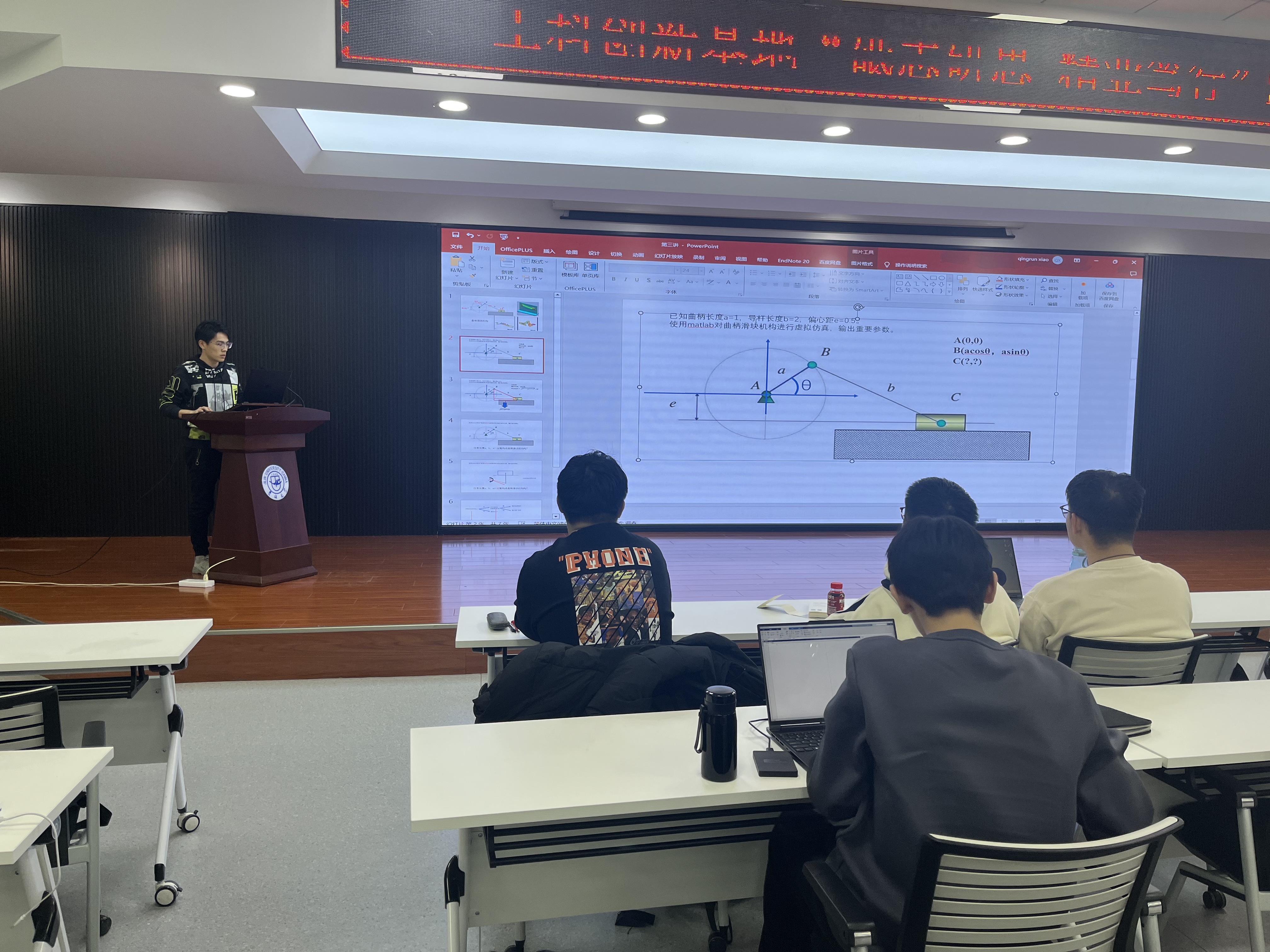 培训过程中,肖清润同学以曲柄滑块机构与摇杆滑块机构的虚拟仿真为例,讲解了如何进行定位、描述运动轨迹的步骤,进一步巩固同学们对软件的应用。培训过程中,同学们及时反馈自己操作中遇到的问题,与肖清润同学积极交流沟通,找到问题产生的缘由。在此过程中,同学们对这款软件有了更加深入的理解,并且能够初步的利用软件解决简单的工程问题。