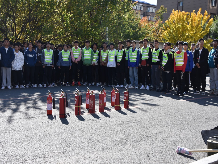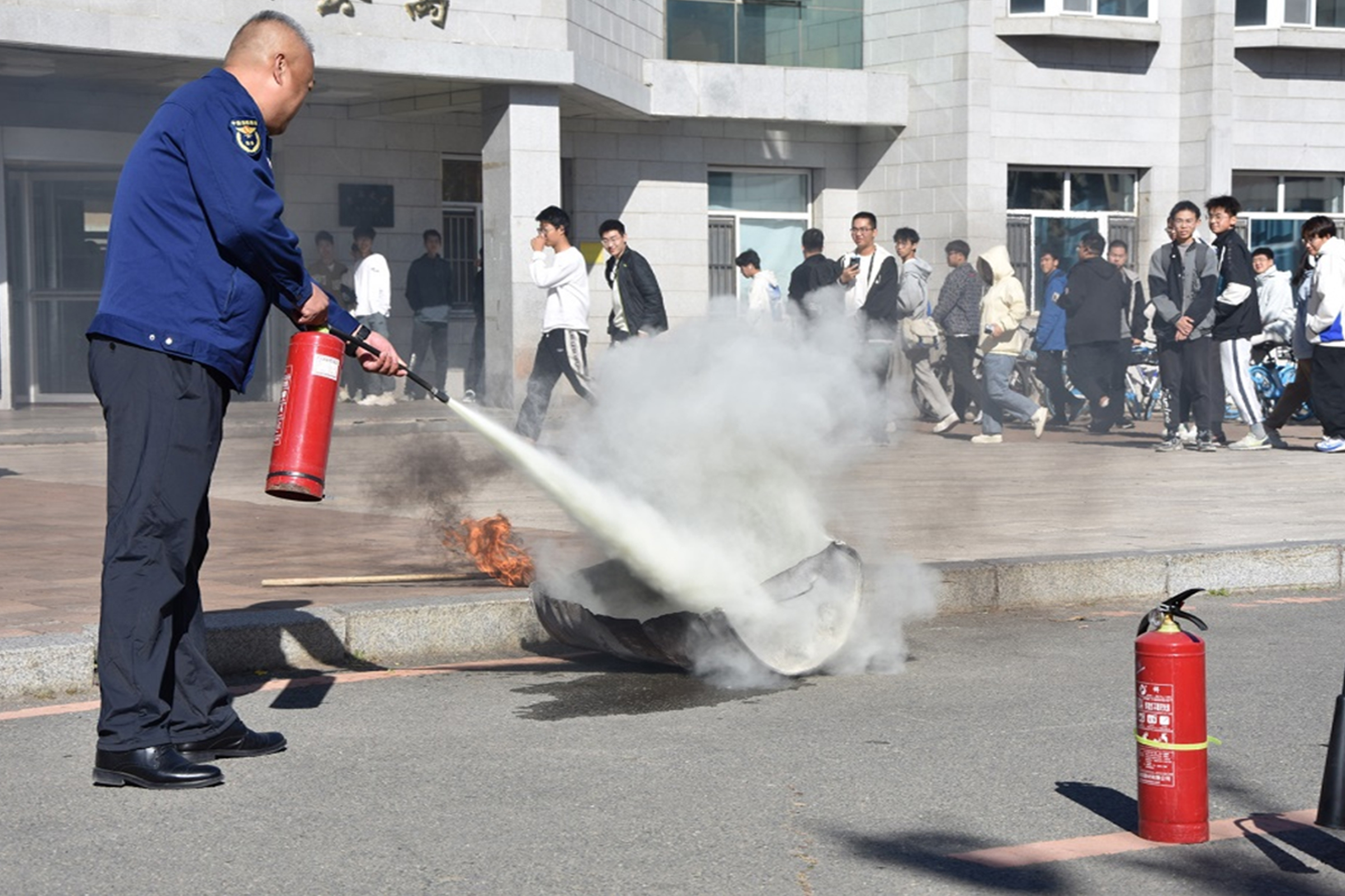 疏散演练结束后,学生立即进入灭火演练现场。工作人员详细地向学生讲解各类灭火器及使用方法,使学生了解不同类型火灾的特点和应对策略。随后,保卫部门模拟在火灾现场的实际操作并指导师生亲自实践灭火演练。