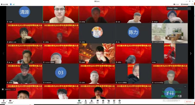 会上,张富尧老师首先结合往届学生培养经验,为大家分享了2024年学科竞赛、年级评奖评优事项等工作,鼓励大家结合个人实际情况积极参加竞赛。此外,张富尧老师还就学期初的全面寝室普查结果对学生宿舍安全用电、寝室卫生问题进行了着重强调。同时提醒同学们按照公寓安全检查标准定期打扫宿舍,整理个人物品,营造出一个整洁干净的寝室环境。同时,张老师鼓励各位同学在新的学期要端正学习态度,严肃考试纪律,认真对待每一门课程,不旷课,不早退,不迟到,对自己的未来进行合理的规划。