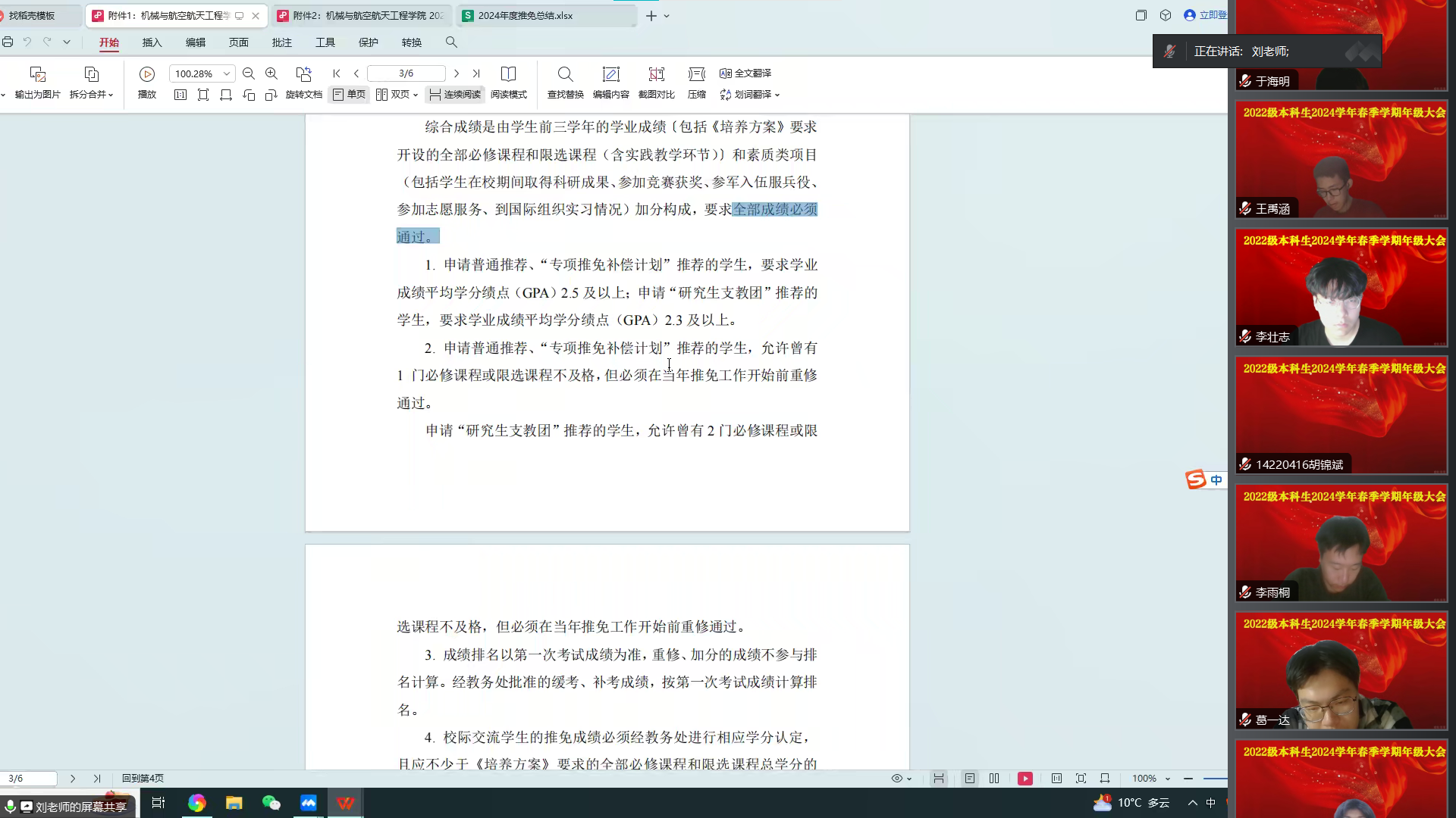 刘继娟老师结合2023年的研究生推免实施细则详细介绍了保研的工作流程,分享了2020级毕业生保研整体情况,鼓励具有保研资格的同学利用本学期积极参与科研、竞赛活动,增强个人竞争力。在会上刘老师和辛老师还针对本科生培养方案为同学们解答困惑,强调各位同学要自己针对培养方案做好大学的课程规划,同时积极鼓励同寝室,同班级的同学们互帮互助,共同解决选课这方面的困难及问题,去度过一个有明确规划,合理安排的大学时光。