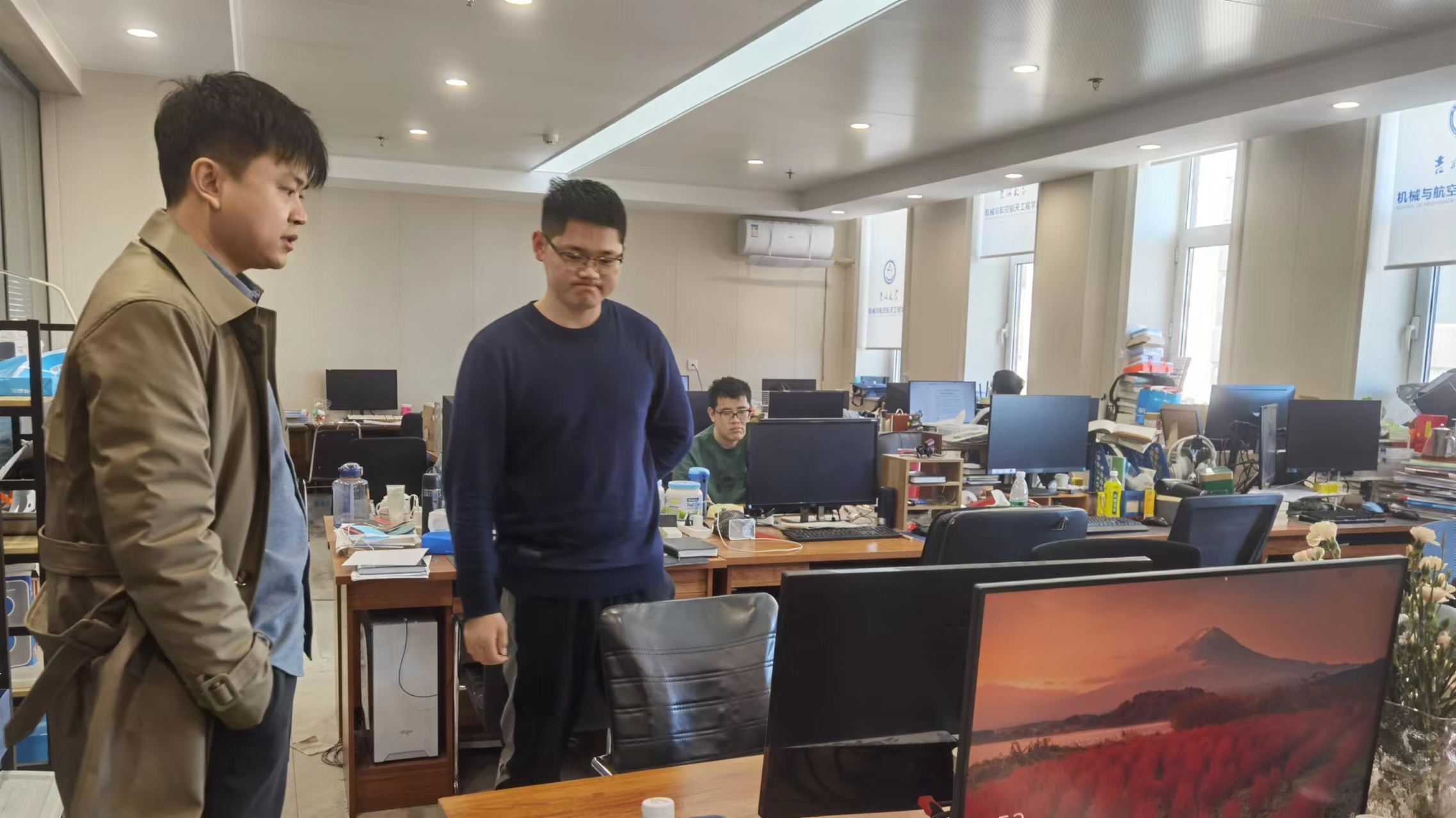 在深入研究生工作室开展消防安全检查中,张瑛嘱咐同学们科研学业压力虽在,但不可忽视消防安全。研究生工作室整体环境良好,仍有个别工作室存在杂物堆积,垃圾没有及时清理的问题,他督促同学们及时整改,自觉打造宜学环境。曲艺在检查中叮嘱同学们不乱接线,不在工作室使用违规电器,人走关电,提醒同学们合理规划工作室空间,保证消防通道通畅,她建议大家建立安全值日制度,人人贡献力量,促进集体安全意识。