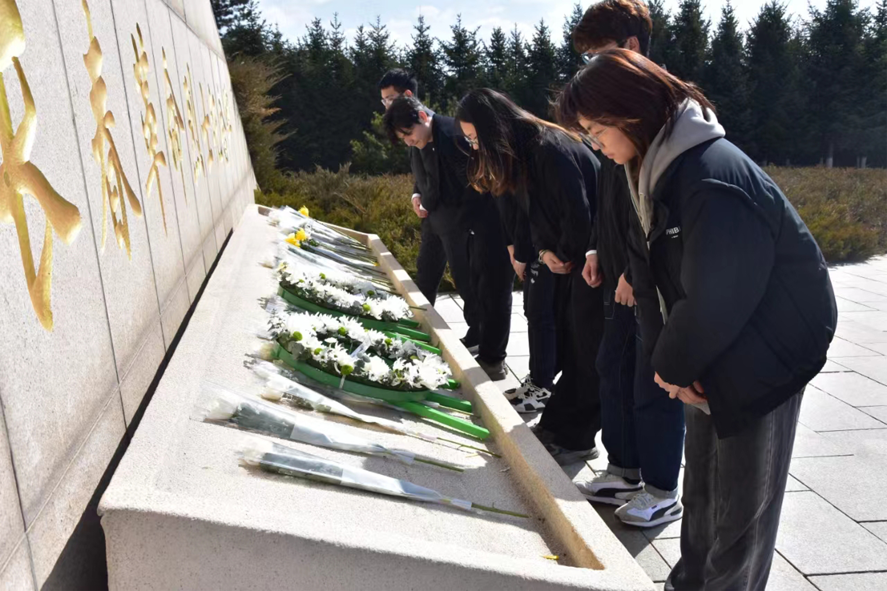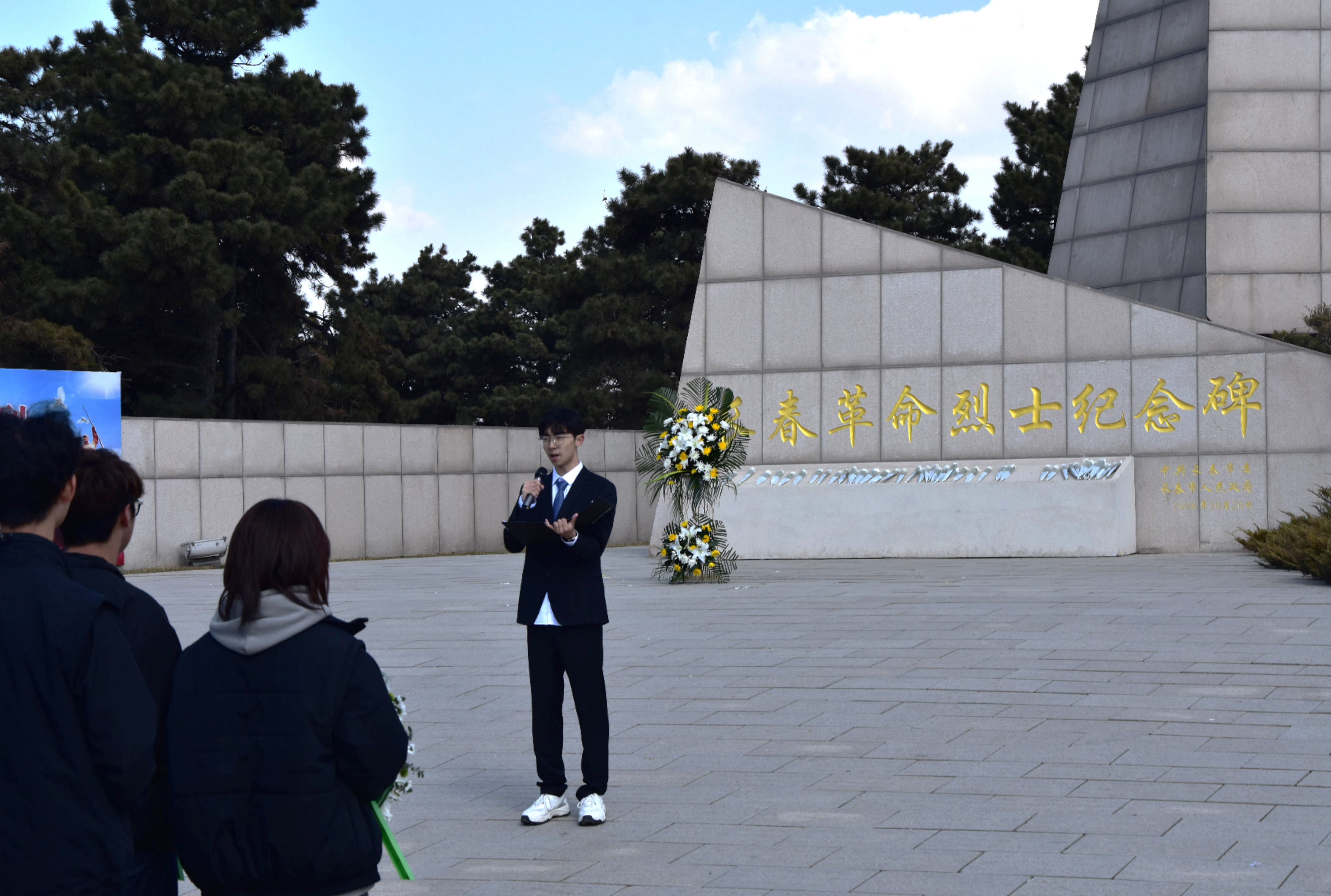 上午十点,2023级徐盟同学作为学生代表在纪念碑下进行了“山河已无恙,致敬英烈再奋发”主题演讲,悼念革命先贤。之后,同学们在长春市革命烈士纪念碑前默哀一分钟。数十名同学手持菊花依次献花表达哀思。