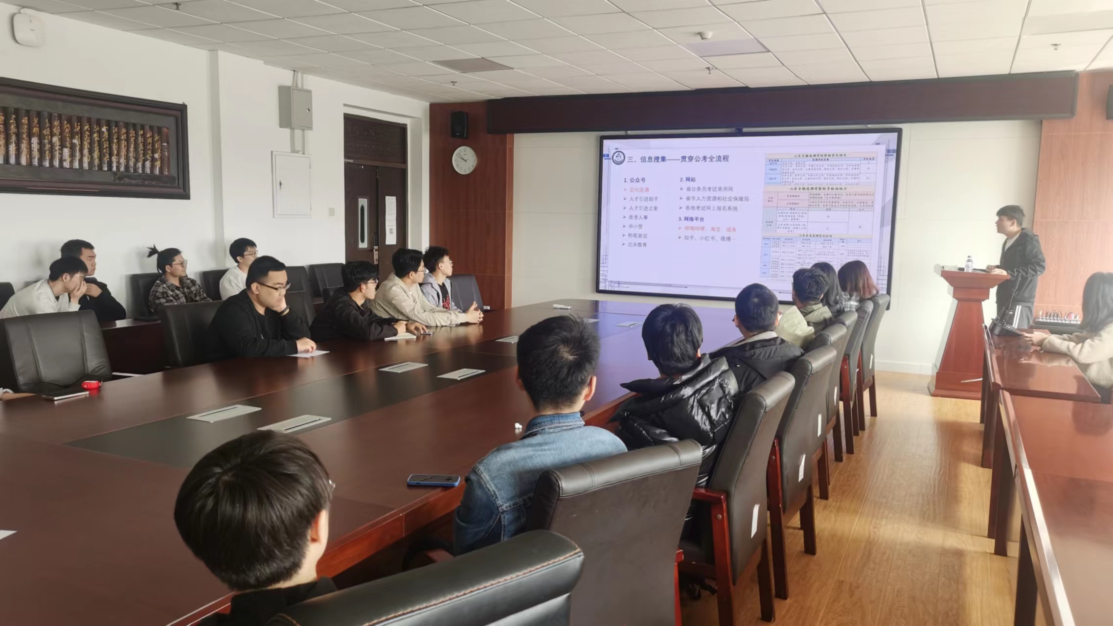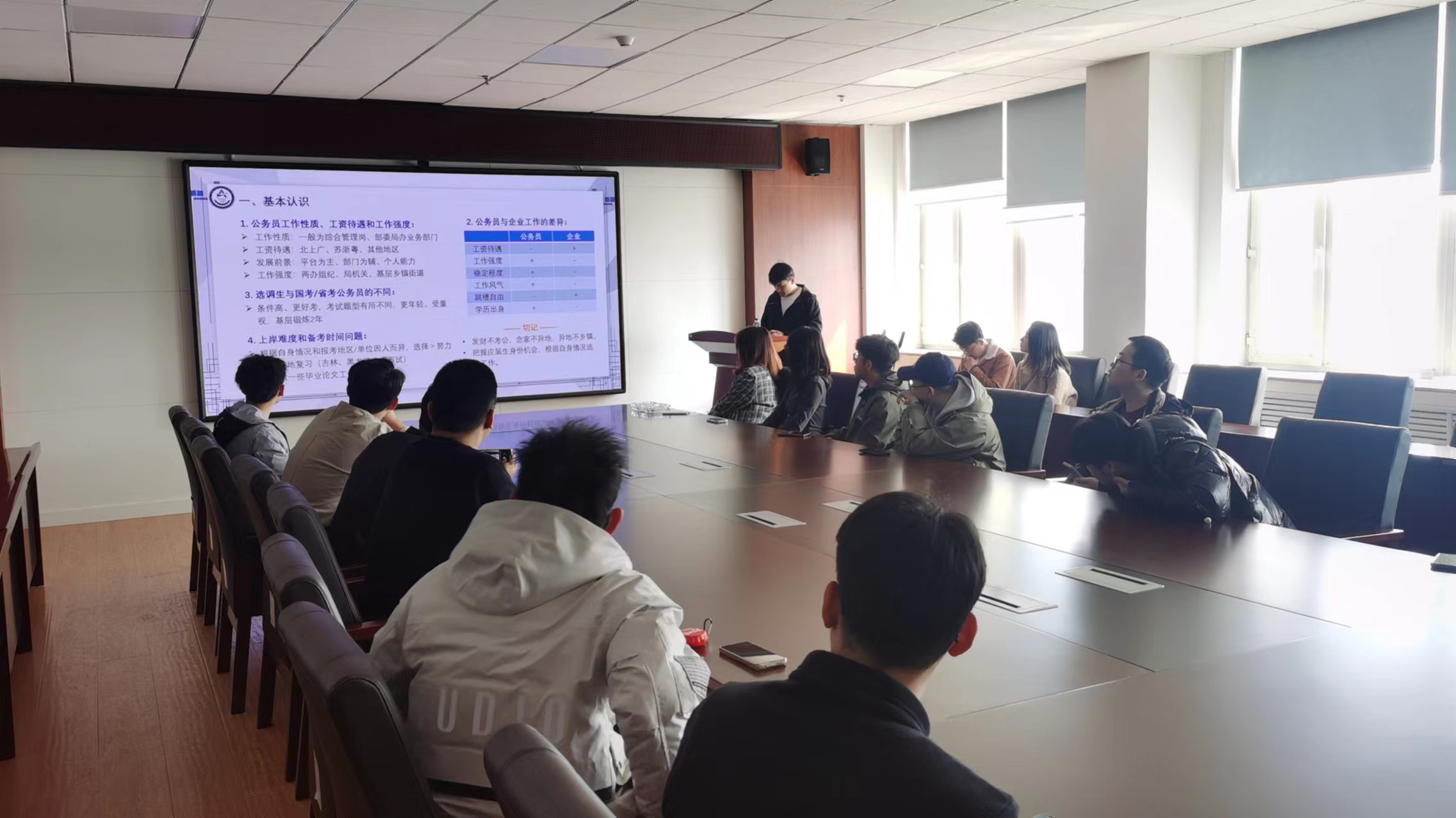 4月12日上午9:30,学院于机械馆529举办第三期“‘职’引人生,奔赴未来”就业分享会。本期分享会邀请2021级硕士研究生徐浩为大家分享定向选调生考试经验。