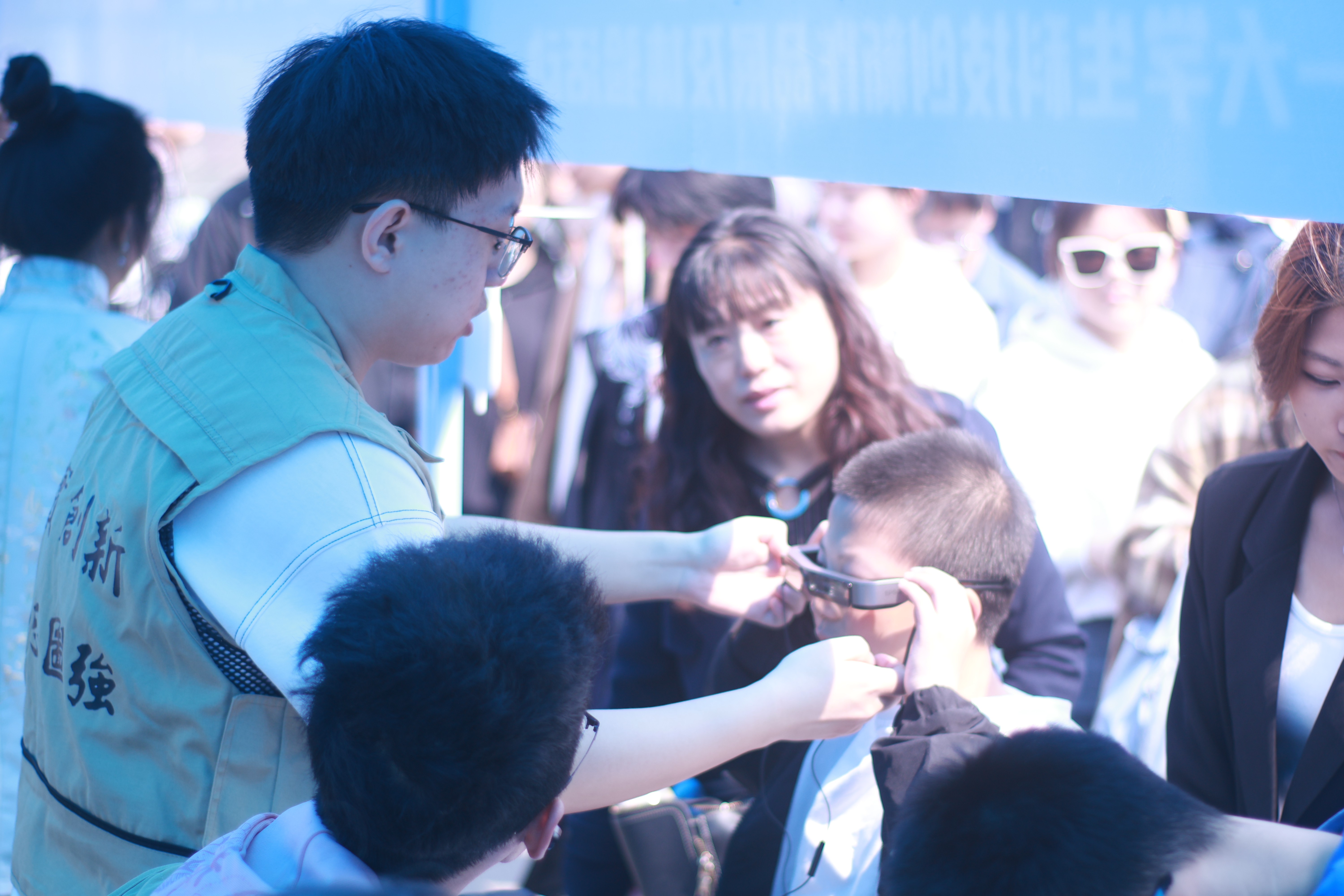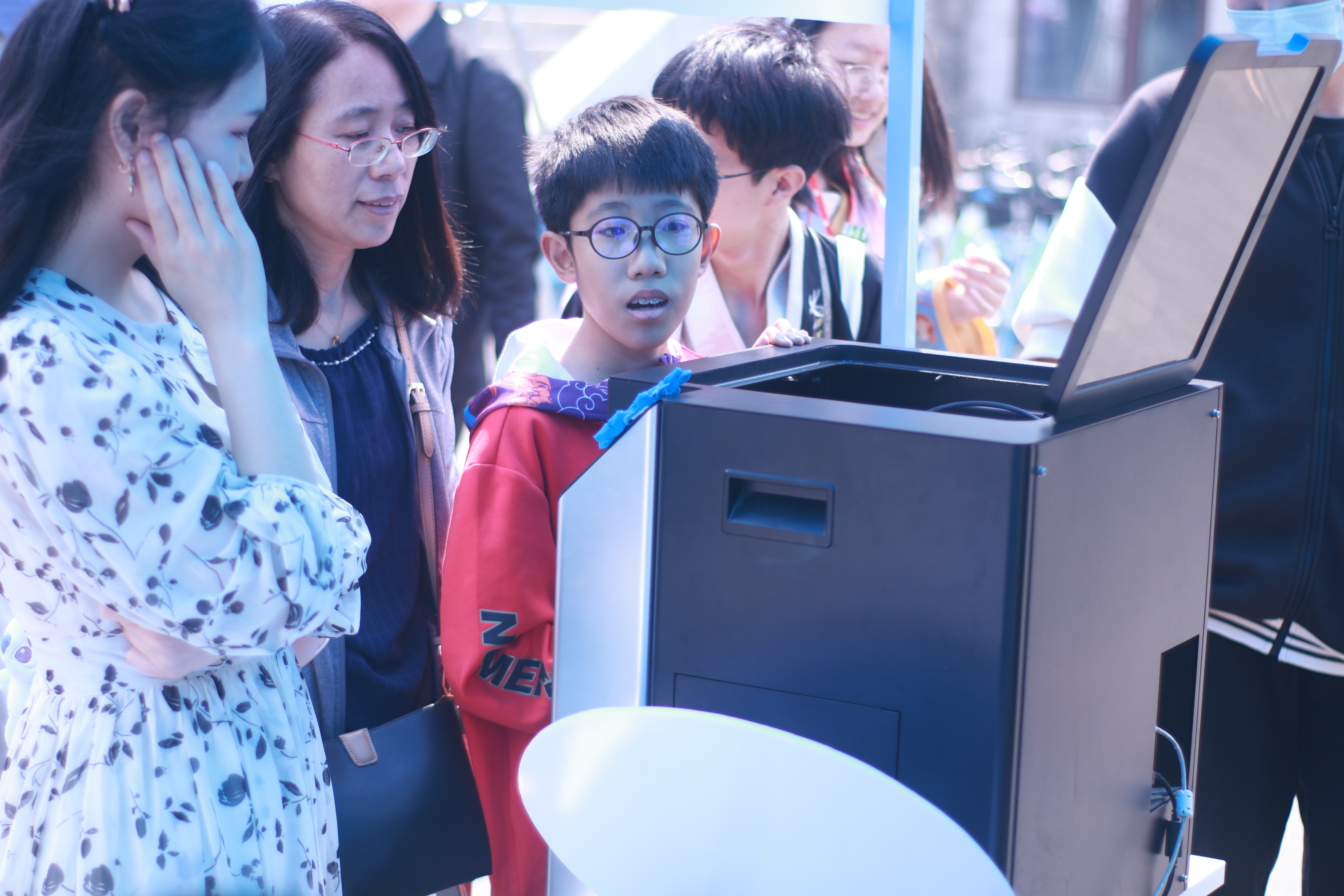 活动在南岭校区体育馆门前举行,现场设置科技体验区、科技实践作品展示区和竞赛代表作品展示区。科技体验区开放VR眼镜体验和3D打印体验活动,学院工科创新基地志愿者为来往师生做讲解并引导游客操作设备,让现场师生亲身感受虚拟现实的别样风景、体验3D打印增材制造过程。