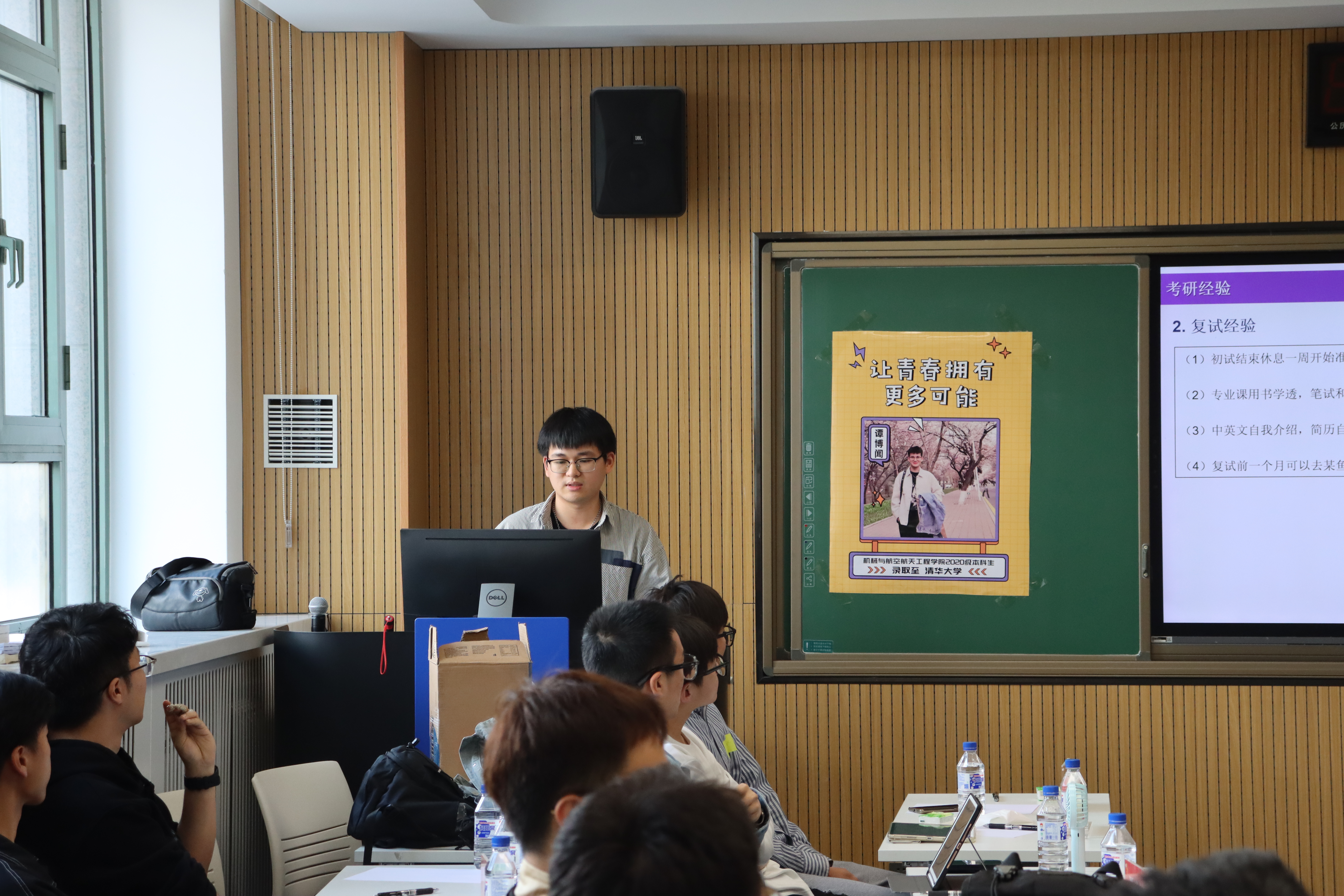 分享会上,6位优秀学子从自身考研经历出发,先后围绕为何考研、院校专业选择、初试备考、复试、调剂等话题向大家做了详细的介绍,并就如何高效制定学习计划、如何平衡专业课与公共课复习时间给出了各自的意见,为同学们提供了参考。他们着重强调了考研过程中心态的重要性,提醒同学们用平和的心态对待每一个复习阶段,努力夯实基础,保持自己的学习节奏。