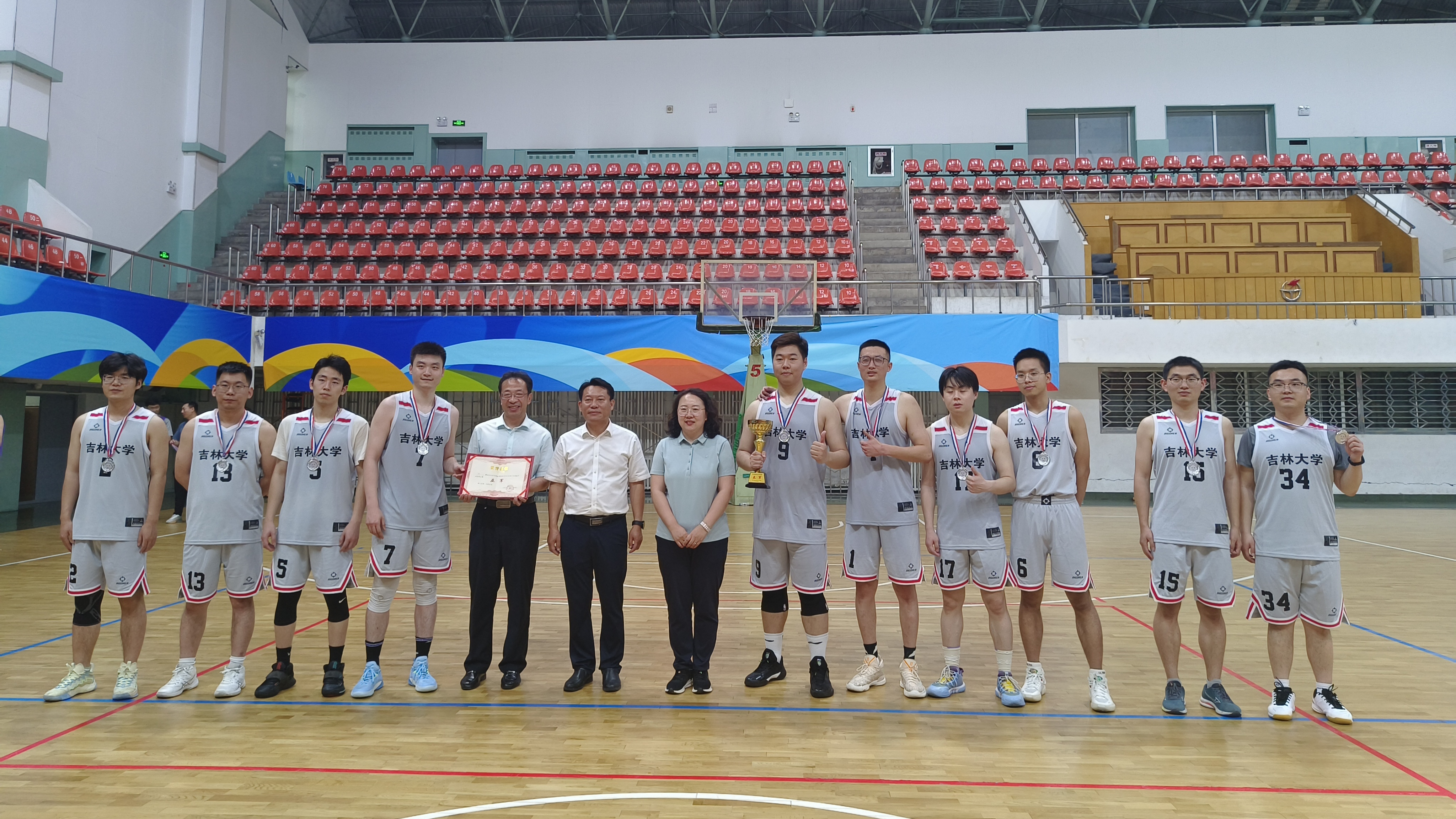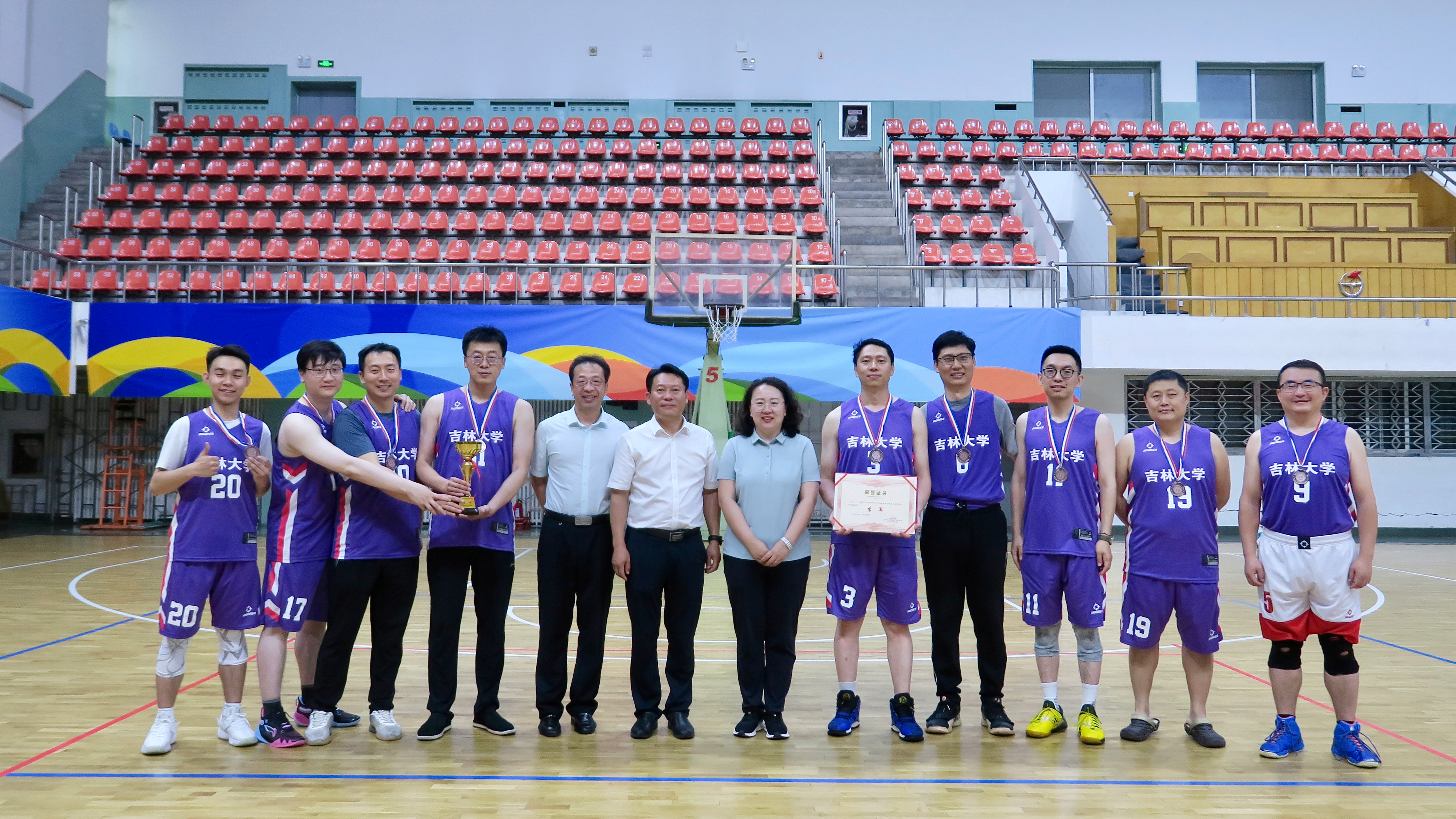 赛后,学院党委书记郑福胜、党委副书记兼副院长柴媛、行政副院长马研分别为冠军、亚军和季军队伍颁发了奖杯、奖牌和证书,并与他们合影留念。郑福胜向获胜队伍表示了祝贺,向辛勤付出的裁判员表达了感谢。他强调,“师生杯”篮球赛不仅为学院师生提供了一个展示运动风采的舞台,更是一个增进师生情谊、培养团队精神的平台。他鼓励大家继续以饱满的热情参与学院各项文体活动,为学院的精神文明建设贡献自己的力量。