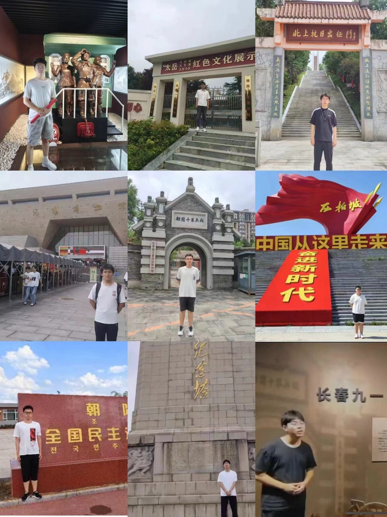 为响应习近平总书记关于弘扬爱国主义精神的号召,增强同学们做中国人的志气、骨气、底气,树立同学们为祖国为人民永久奋斗、赤诚奉献的坚定理想,新葡的京集团8814142223班十余名成员组成的“拓梦启华引航青春”实践团,在30天时间里,走访了12个地市,深入探索家乡中的红色印记,积极学习革命先烈的英勇事迹,深刻感受坚韧不拔、无私奉献的革命精神,在南昌八一起义纪念馆、淮海战役纪念馆、太岳红色文化展示馆、西柏坡纪念馆、长春南大营陈列馆、中共浙南特委旧址、731部队罪证陈列馆、洛阳市博物馆、德惠市博物馆等地,开展了“探寻革命精神 赓续红色血脉”的主题暑假社会实践活动。