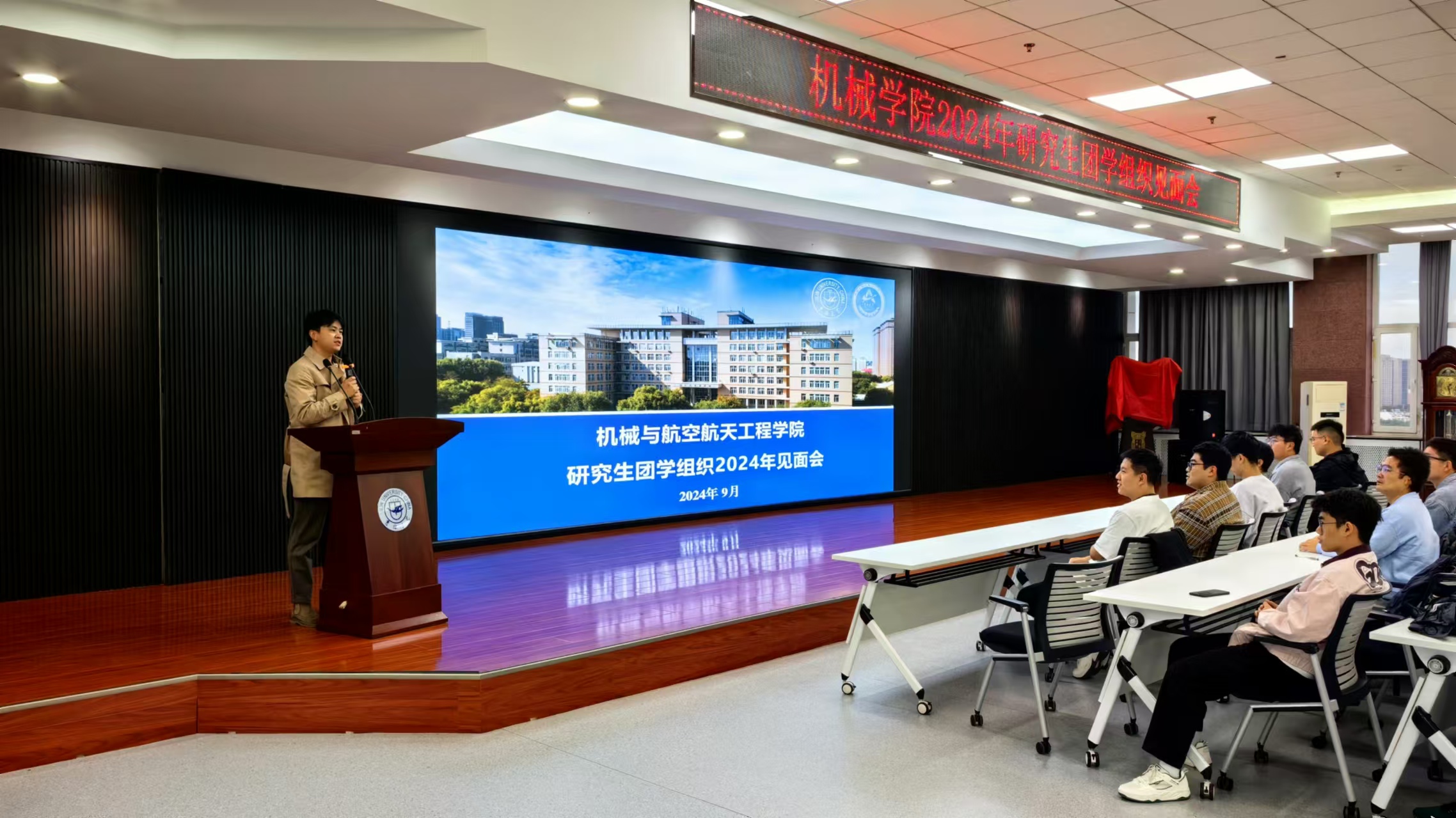 为增进学院研究生团学组织新老成员的互相了解,增强队伍凝聚力,2024年9月20日晚,学院在机械馆802开展了2024级研究生团学组织见面会,研究生辅导员张瑛以及全体研团成员参会,研究生团委学生负责人孙雨治主持见面会。