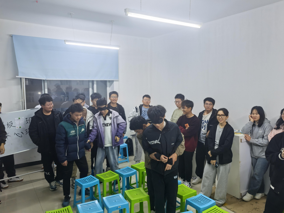 “信任之旅”环节将活动推向了高潮。在这个游戏中,每位同学都需要蒙上眼睛,由一名伙伴搀扶着走过一段设定好的路程,途中需跨越障碍、上下台阶。这不仅考验了同学们之间的信任与默契,更让他们体会到了在困难面前相互扶持、共同前进的力量。