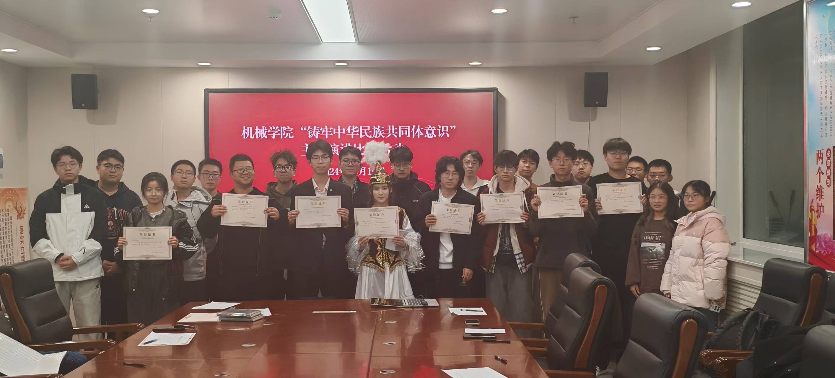 选手演讲后,评委对作品做出讲评,并给出反馈和建议。所有选手演讲完毕后,由组织部部员进行公开公平公正的汇总核分。之后由赵孟泽宣布比赛结果,颁发奖品与证书。随后沈渤然做活动总结,鼓励同学们为民族团结进步事业注入青春活力。最后参赛选手与各位评委以及工作人员合影留念。机械学院“筑牢中华民族共同体意识”主题演讲比赛活动圆满结束。