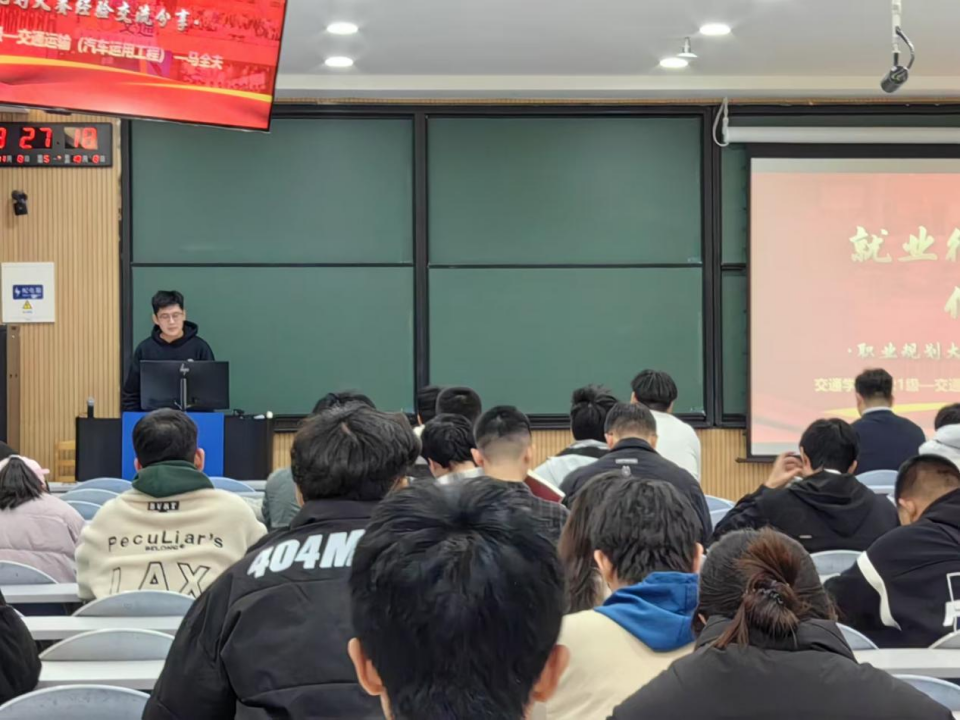 活动现场座无虚席,来自南岭校区不同年级的学生们满怀期待地等待着主讲人的精彩分享。本次活动的主讲人分别是来自材料科学与工程学院的周小涵和交通学院的马全夫。两位主讲人曾在去年校职业生涯规划大赛的成长赛道,就业赛道取得优异成绩。