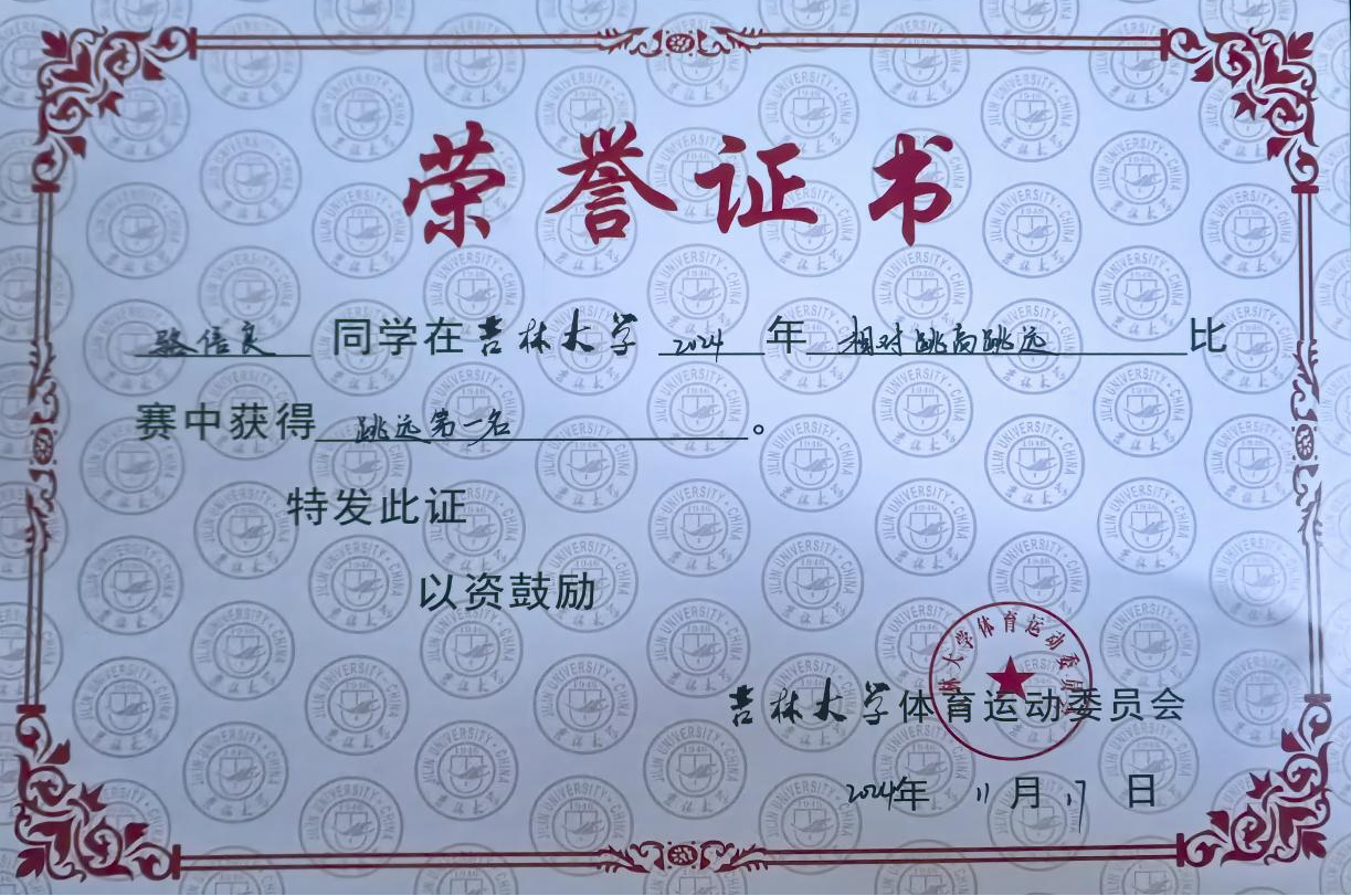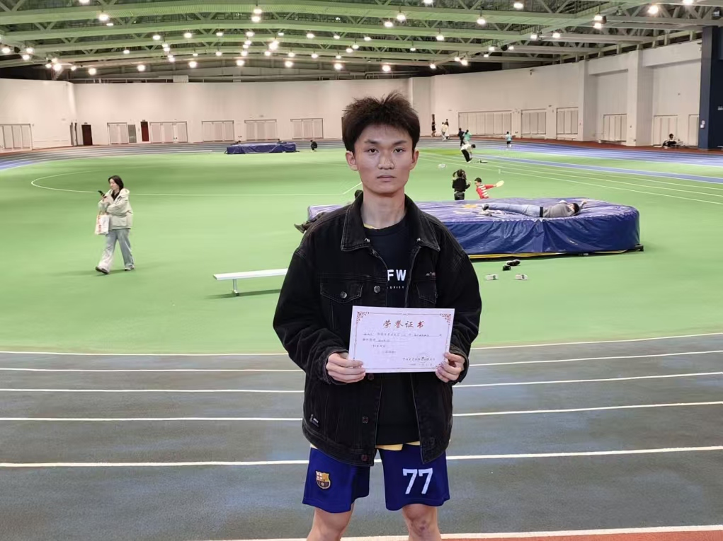 在比赛过程中,我院学子骆信良全力以赴,以积极的态度投身比赛。每一次起跳、每一次落地,都是挑战自我的见证。他用不懈的努力生动地诠释了体育精神,绽放出耀眼的光彩。最终,我院学子骆信良同学在男子跳远比赛中荣获第一名,为学院赢得了荣誉。