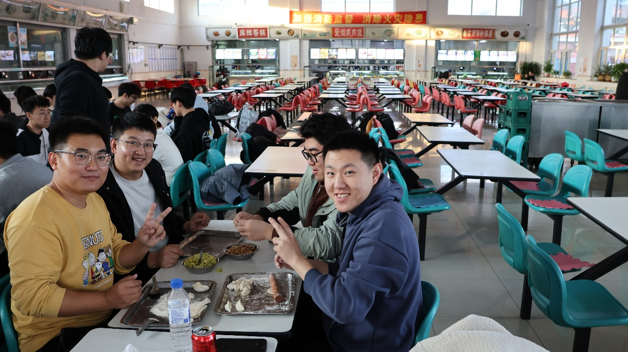 活动前,研究生辅导员张瑛带领学生骨干细心筹备,提前与五餐厅管理员沟通活动事宜,订购所需物资,精心布置场地。当日下午三点,活动开始。同学们自发分成一个个小组,围坐一堂,包起了饺子。大家相互协作,揉面、擀皮、包馅,还边向餐厅工作人员取经。大家包出了五花八门的饺子,形状各异、风格多样,有的饱满厚实,透露出一份朴实温暖;有的精巧别致,展现了细腻巧手;还有的造型奇特,充满创意与趣味,每一只饺子都饱含着同学们的巧思与欢乐,成为独特的美味艺术品。在餐厅后厨的烹饪下,热气腾腾的饺子被一盘盘端上餐桌,大家一边品尝着自己的劳动成果,一边轻松畅谈,温暖与欢声充满了整个空间,仿佛寒冷的冬天都被这一份温情驱散。