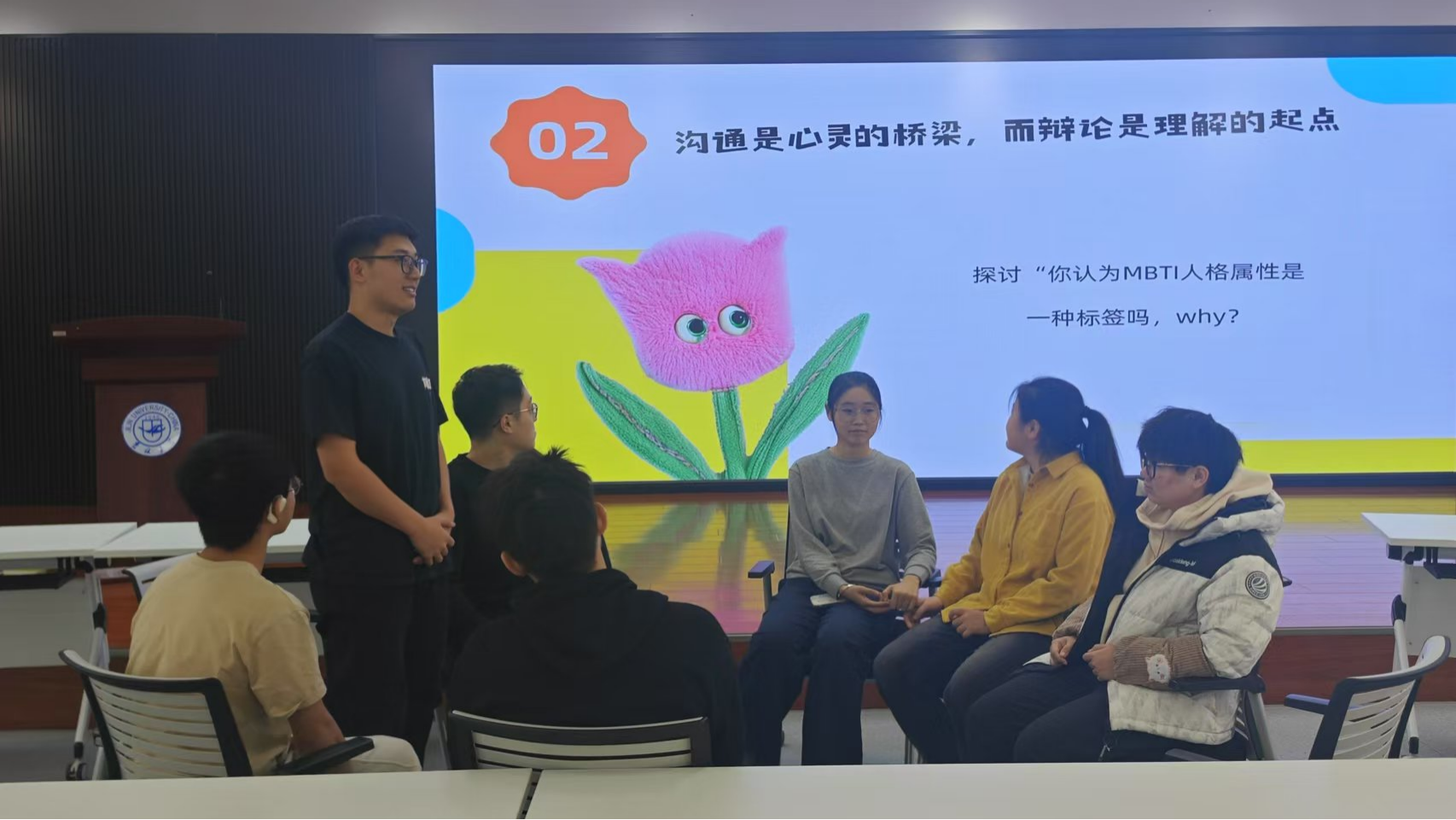 本次活动主要包括三个交流互动环节。在“性格侦探,心灵探险”中,同学们进行了一场MBTI版“谁是卧底”游戏,通过伪装成另一种类型人格,找寻和探索不同性格的特点,增强彼此之间的联系和理解。在“沟通是心灵的桥梁,而辩论是理解的起点”中,同学们就“MBTI人格类型是否是一种标签”展开讨论,让大家对MBTI理论有了更深入的认识,对不同性格的特质有了更深刻的思考。在“IE百宝箱”中,参与活动的“I”人与“E”人在纸上分享了自己做过的“最E或最I的事”,为大家提供了进一步观察和了解他人性格和行为的窗口。