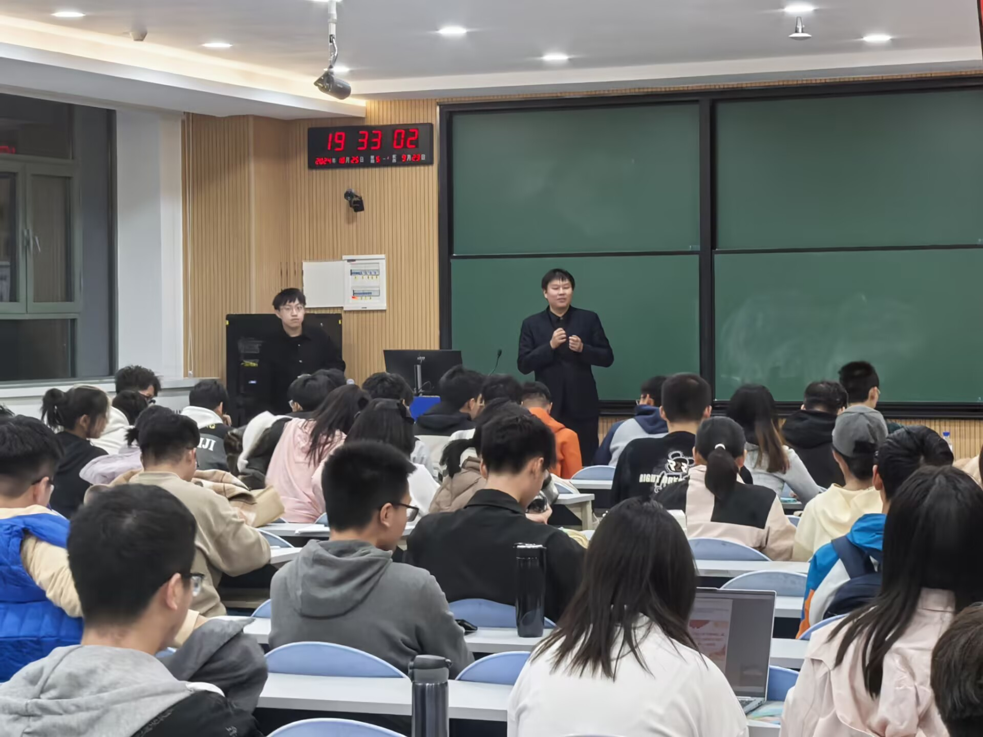 为激励大一新生学习成长,增强凝聚力与归属感,培养责任感与使命感,10月25日,第十九期“薪火相传”经验分享会在南岭校区逸夫教育大楼B114成功举办。本期活动邀请到2022级机械工程专业学生刘家良就学科竞赛向参与分享会的各位同学介绍经验、分享经历,面向我院2023、2024级本科生。分享会由工科创新基地管理部主办,工科创新基地管理部副部长李嘉一主持,工科创新基地管理部全体成员到场协助活动进行,近百名同学到场学习。