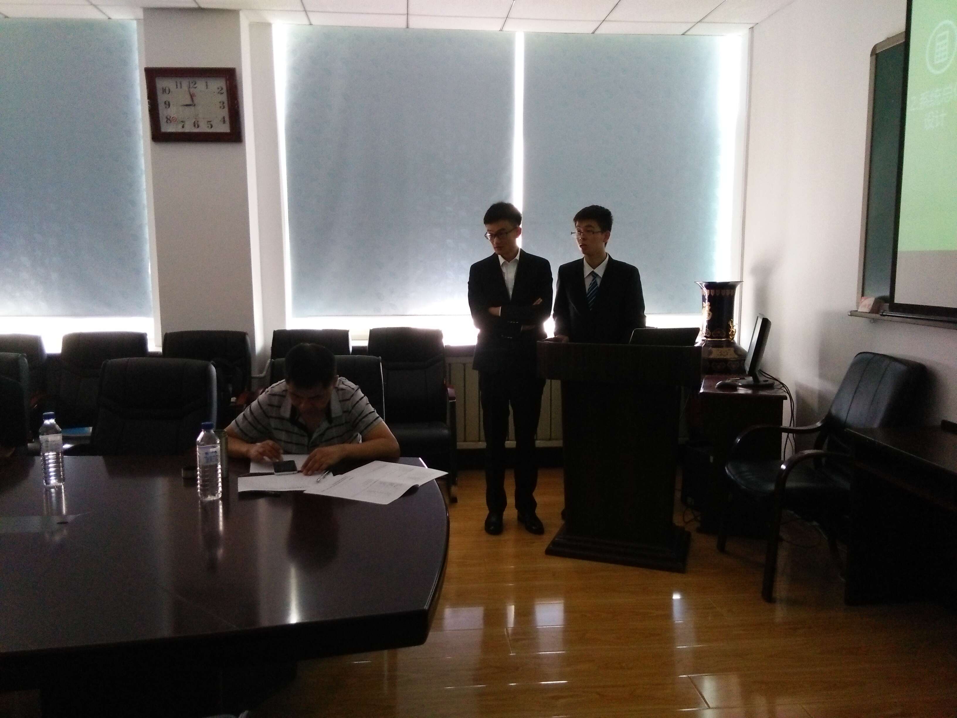 机械学院科技创新部成员一大早就来到了机械馆,布置答辩现场,几位副部长负责维护现场秩序、整理资料、联系相关人员等工作。结题答辩在8时30分正式开始,选手们依次在门口签到,之后进入会议室答辩。选手们从科研经费使用情况、项目目前进展情况、经验总结、总结反思等方面介绍了自己的情况,幻灯片内容形象、精彩、详实,评委老师们专注聆听,认真记录选手们的作品情况。选手介绍作品过后,评委老师依次对选手进行提问,同学们大多能够冷静理智、沉着应对,给予评委满意的答案。答辩结束后,科技创新部成员一起总结了本次活动情况,并在以后的活动中改进不足和缺点。