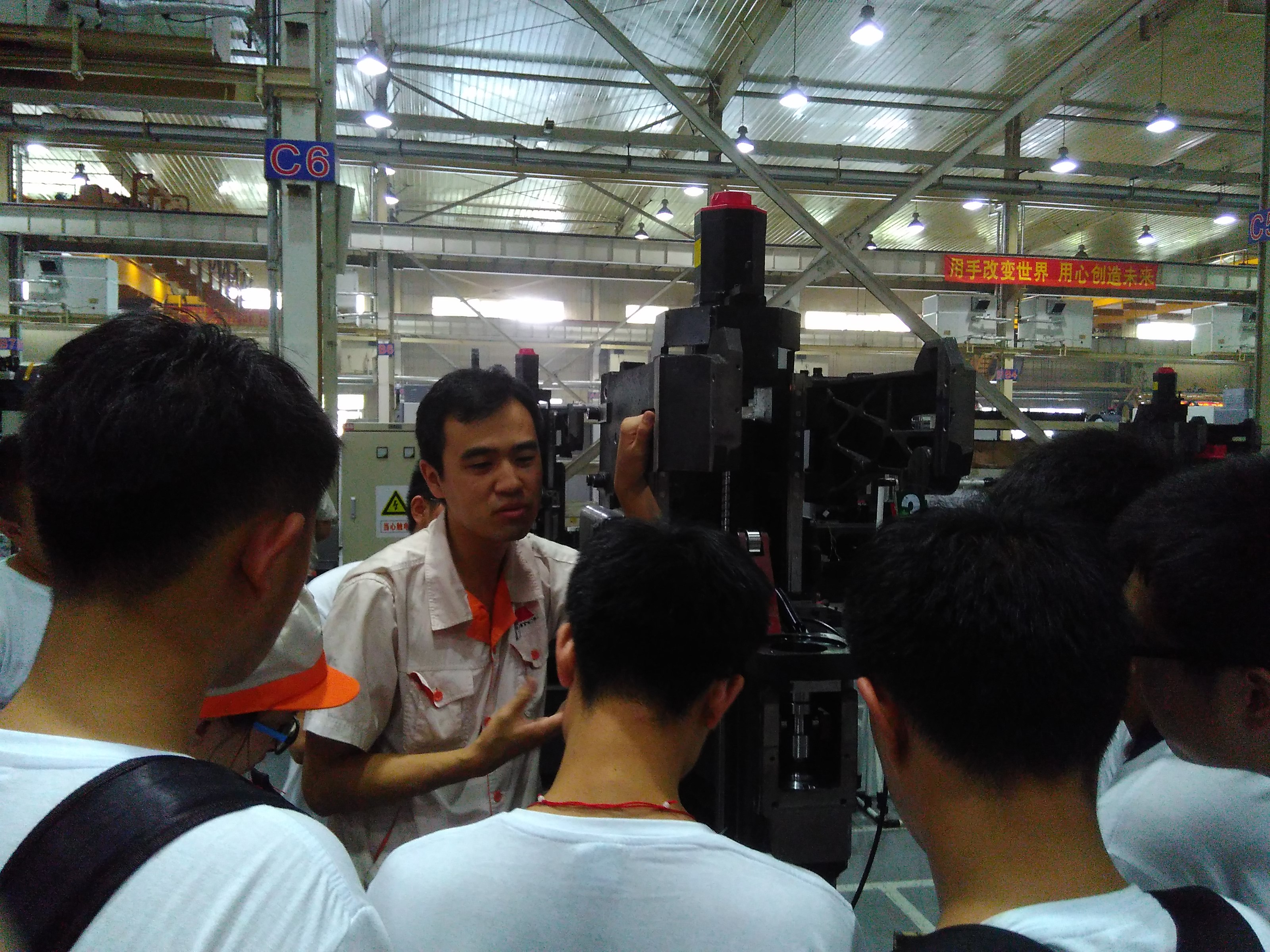 在了解了机械零件的加工方式之后,同学们对机械加工的流程已经初步掌握,7月22日下午,在沈阳机床工作人员的带领下,同学们参观了沈阳机床厂中捷装配车间。 与较暗的加工车间不同,一进入装配车间,简洁的车间环境便让同学们眼前一亮。在同学们参观车间期间,一位装配师傅正在作业,同学们纷纷驻足观看装配流程。装配师傅熟练地装配,调试,修整,短短几分钟就完成了一件小型部件的装配。在工作人员的介绍下,同学们很快掌握了装配的要点。同学们由衷地为沈阳机床厂水平过硬、技术一流的工人师傅发出赞叹,更为沈阳机床厂脚踏实地,追求完美的企业文化深深折服,期待在新一轮东北振兴疾行稳进的背景之下,沈阳机床厂将为沈阳制造乃至中国制造升级提供的可借鉴的企业版本。 三天的参观实习已经结束,同学们在参观中受益良多,相信经过实习之后同学们会将自己的思考与感悟应用到学习中,将创新进取的精神注入每天的生活里,为祖国机械行业的发展增光添彩。