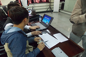 下午1点到3点,志愿者们在机械馆527室,为评审团的专家准备文具及文件。与此同时,在机械馆8楼报告厅,志愿者们完成了所有报名参赛队伍的分组工作,并将参赛答辩PPT进行分组拷贝和核对,由于需要拷录的资源较多,该过程一直持续到晚上8点。紧接着,组织部和秘书部全员抵达逸夫楼,对5楼A区的等待区及答辩区教室进行了周密的布置和安排,同时对教室内的投影及音响设备进行调试。在前期准备工作接近尾声时,两个部门进行了赛事流程的模拟演练,并在老师的指导下,进一步完善了对参赛选手与评委的入场引导流程。大家不知疲倦地工作到晚上10点整,丝毫没有怨言,纷纷把能为大赛的成功举办贡献一份力量当做自己的骄傲。