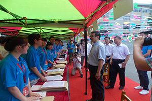 学院前台的工作人员对校领导的视察表示热烈欢迎,热情洋溢的迎新志愿者们让迎新工作充溢着温暖。两位校领导和蔼耐心地询问了几位工作人员的学习情况,并对前来报道的新生们进行了亲切交谈和慰问。随后前台工作人员向校领导展示了的机械学院的迎新场地——迎新接待点前人头攒动,工作人员各司其职,温馨的场地布置,贴心的流程设计,让迎新现场气氛热烈但秩序井然。为了此次迎新,学院作了详细部署,致力于为新生和家长提供周到热情的服务。明确分工,通力协作,保证了迎新工作有序高效运行。在了解了基本情况后,校领导对迎新工作予以了肯定,同时指出一定要切实服务好新生和家长,保证新生正常入学等相关指示。