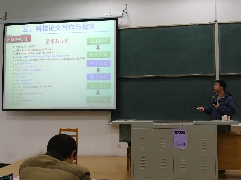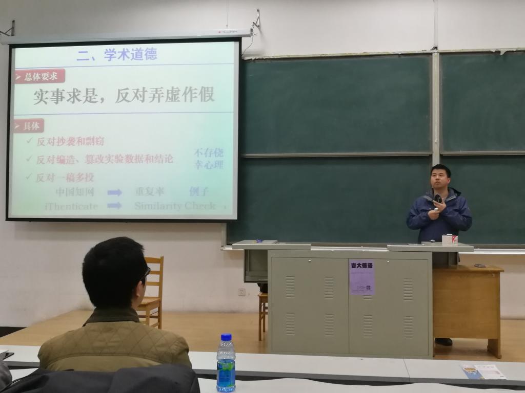 黄虎教授从自己多年积累的经验出发,总体的概括了论文写作的各个要点。从论文结构、资料搜集、常用软件、图例细节等方面进行讲解,并推荐了常用的软件和数据库。强调了学术道德的重要性,介绍了论文重复率、查重方法和结果,指出了学术不端行为的恶劣后果。报告最后,对同学们提出的问题进行了详细解答。