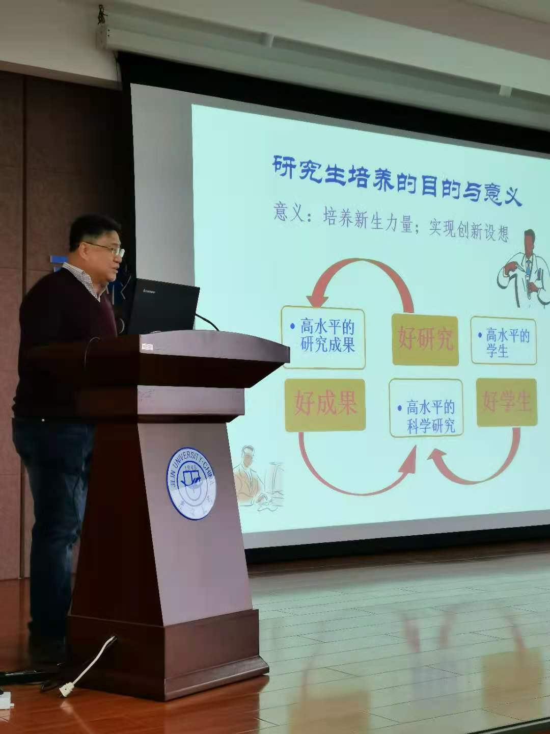 孙建国教授以《浅谈研究生培养的方法与艺术》为题目,围绕研究生培养的问题与挑战、解决问题的途径与对策、研究生培养方法、研究生培养艺术等四个方面做了报告。面对当前研究生培养遇到的问题与挑战,孙教授以自身培养研究生为例,向各位老师做了分享,他认为导师应该以身作则做典范,避免学术失范,同时要建立标准化研究生培养流程,指导研究生加强阅读,参加学术交流,加强人际沟通。研究生培养方法方面,孙教授提出对于研究生要有标准培养流程,开题、中期、答辩必须按要求提交报告,组会汇报PPT文件要有标准提纲,每位研究生在校期间所有学习相关资料要建立纸质档案,编号备份。研究生培养艺术方面,孙教授提出要讲究“六心三育”。报告会上,孙教授还对造假与抄袭的预防和识别向参会导师们做了分享。