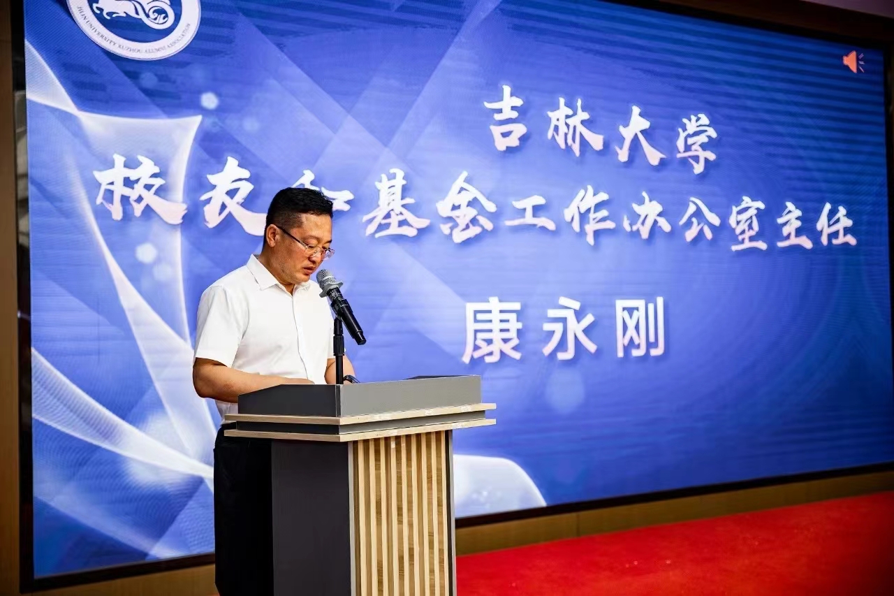 康永刚主任代表母校全体师生员工向吉林大学徐州校友会的成立表示热烈祝贺。他表示,母校的快速发展,与广大校友的关心支持和无私帮助密不可分,创造母校更加辉煌的未来,需要全体师生员工的不懈努力,更需要广大校友的共同奉献。吉大校友在徐州的各行各业顽强拼搏、成绩斐然,为母校赢得了荣誉和声望,母校为校友们取得的成绩感到无比的骄傲和自豪。他希望徐州校友会成立以后,不断完善制度建设、规范组织机制,优化服务意识、提高服务实效,创新工作理念、打造合作平台,充分发挥好校友会的桥梁纽带作用,为校友事业发展推波助澜,为母校“双一流”建设添砖加瓦。