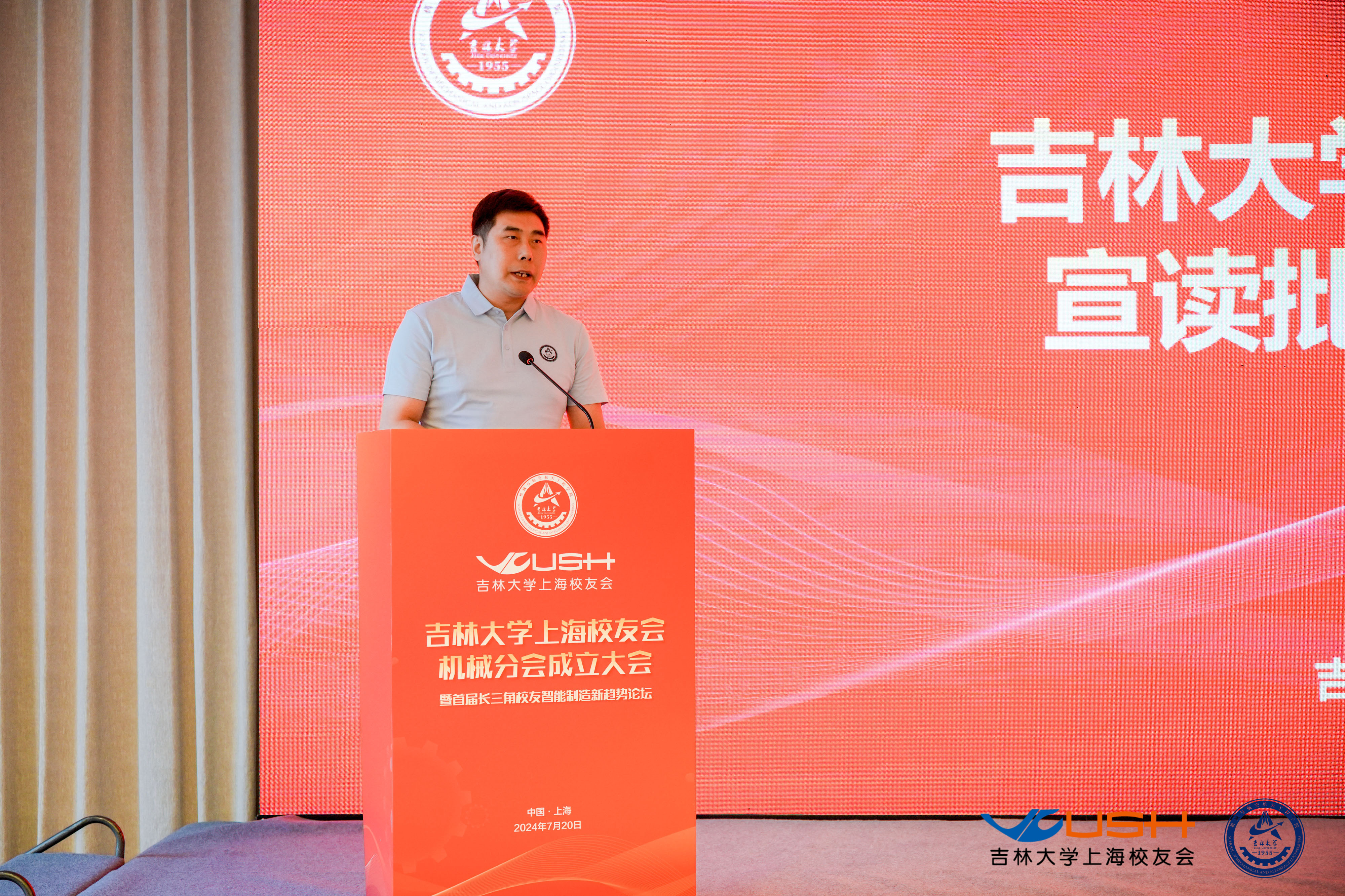 吉林大学校友和基金工作办公室副主任、校友总会副秘书长许诺宣读了《关于同意吉林大学上海校友会机械分会成立登记的回函》和吉林大学上海校友会机械分会第一届组织机构成员名单。