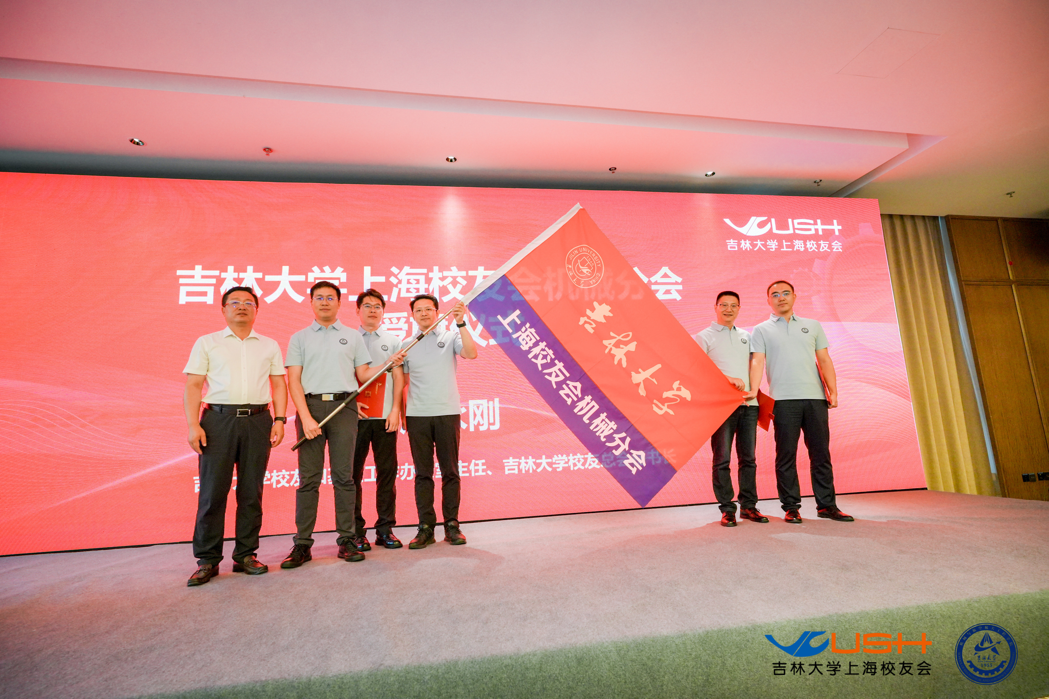 吉林大学校友和基金工作办公室主任、校友总会秘书长康永刚为当选的会长、副会长、秘书长颁发聘书,并向上海校友会机械分会首任会长、学院2003届校友刘爱国授旗。