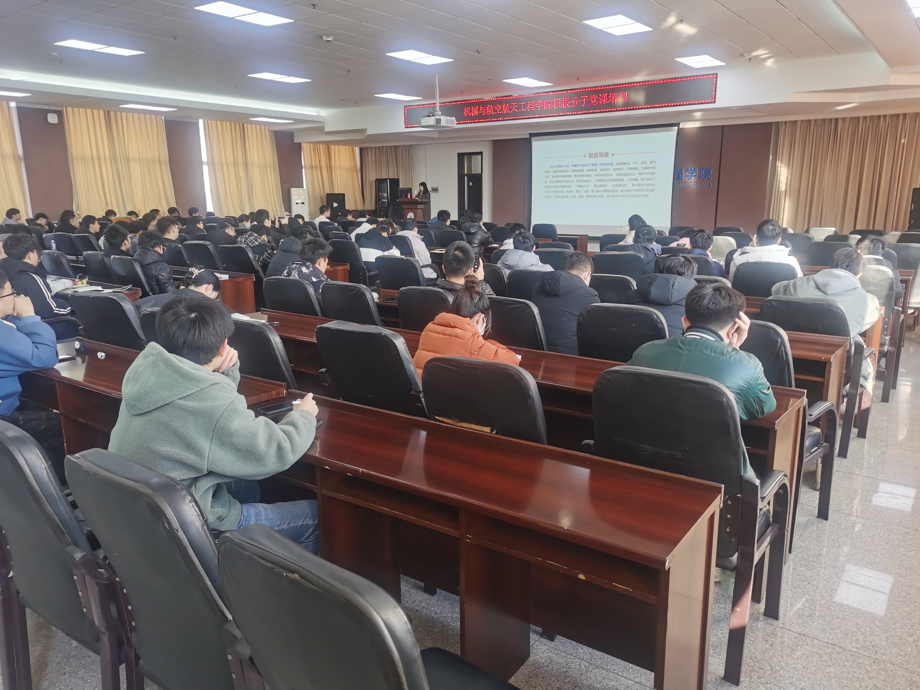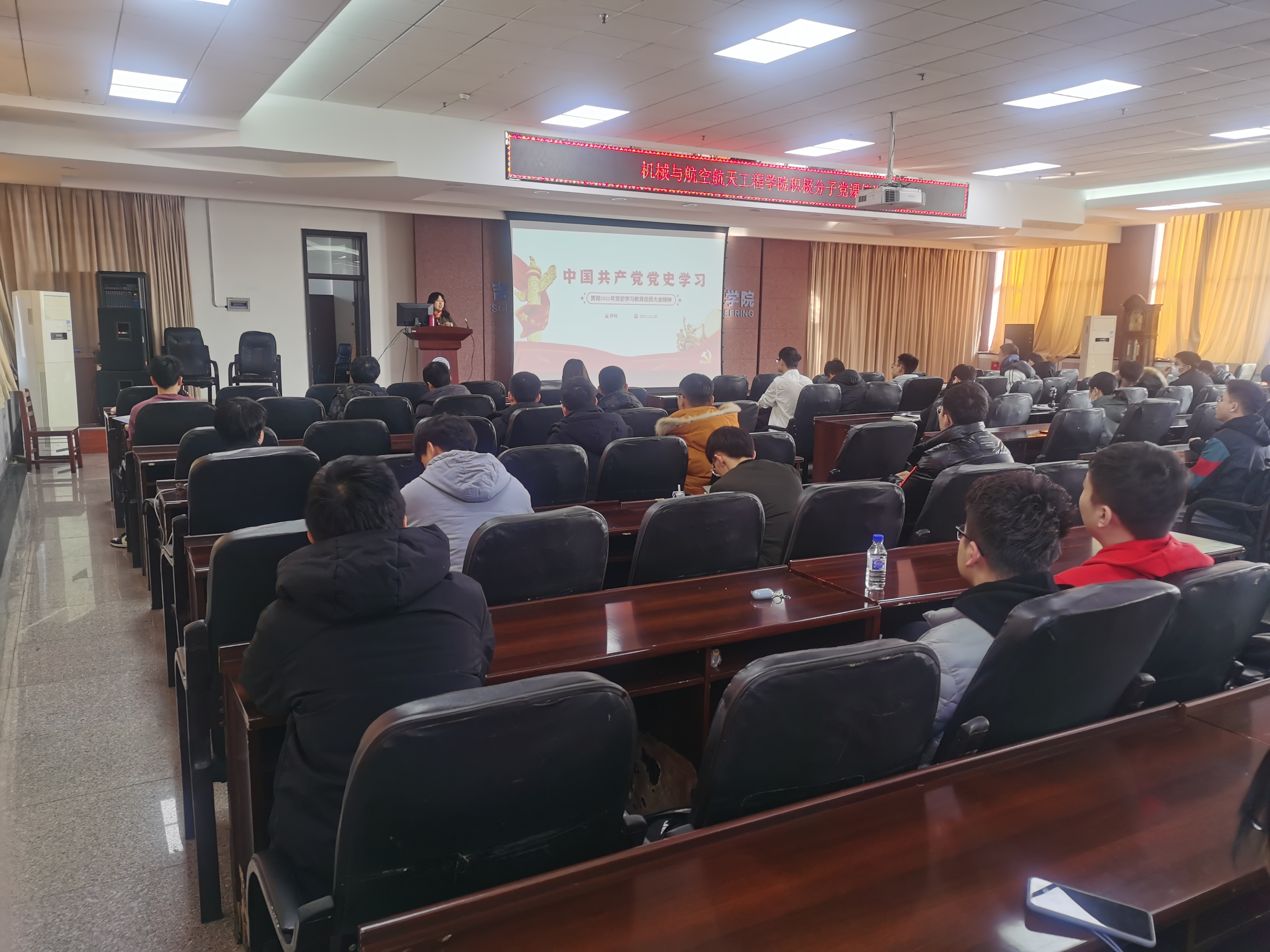 11月20日下午,学院组织入党积极分子在机械馆529会议室集体观看由中央组织部、中央广播电视总台联合录制的3期《党课开讲啦》节目,第1期《党的光辉历程》、第2期《伟大建党精神》、第3期《党的伟大成就》。