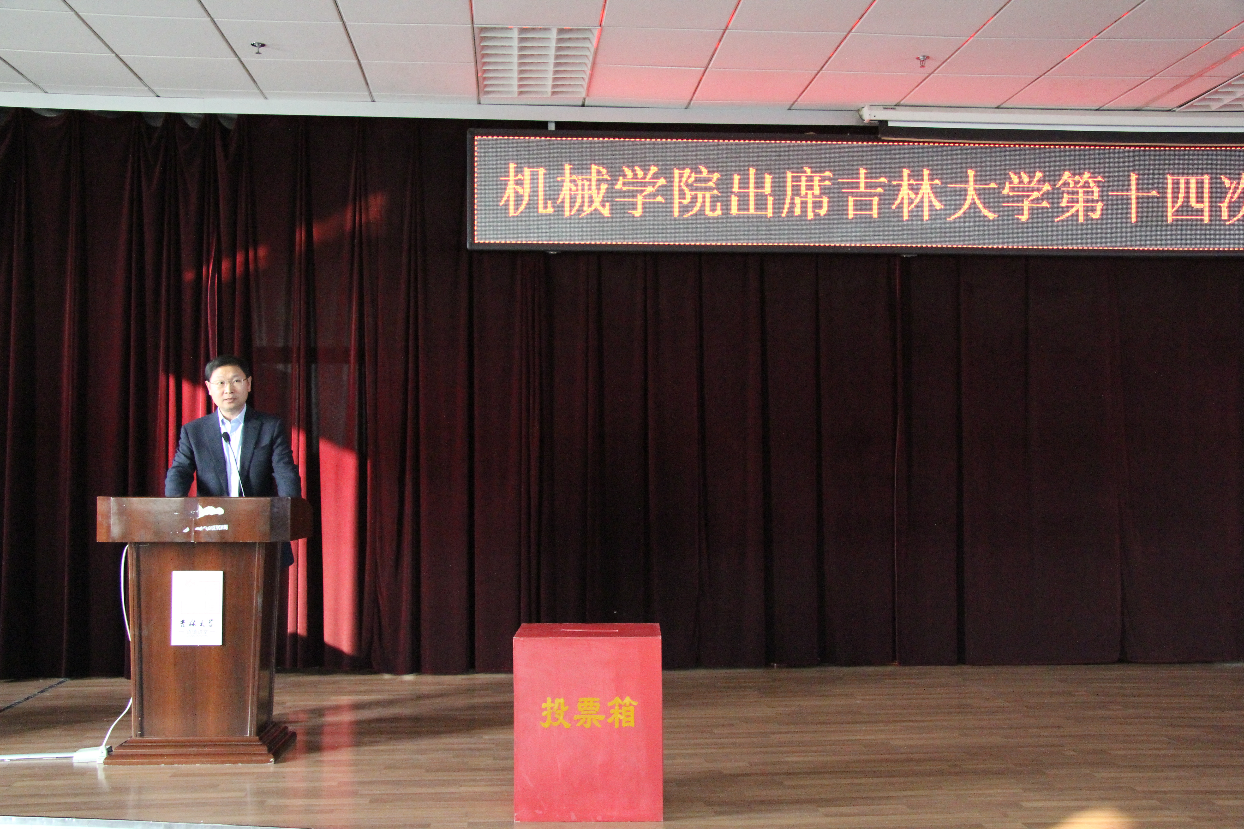 会上,学院党委书记王国强介绍了本单位出席学校第十四次党代表大会代表推选工作情况,党委副书记王柏宣读了《关于同意机械科学与工程学院党委报来的8名出席中国共产党吉林大学第十四次代表大会代表候选人预备人选的批复》,副院长黄莹宣读了《机械科学与工程学院出席中国共产党吉林大学第十四次代表大会代表选举办法(草案)》。
