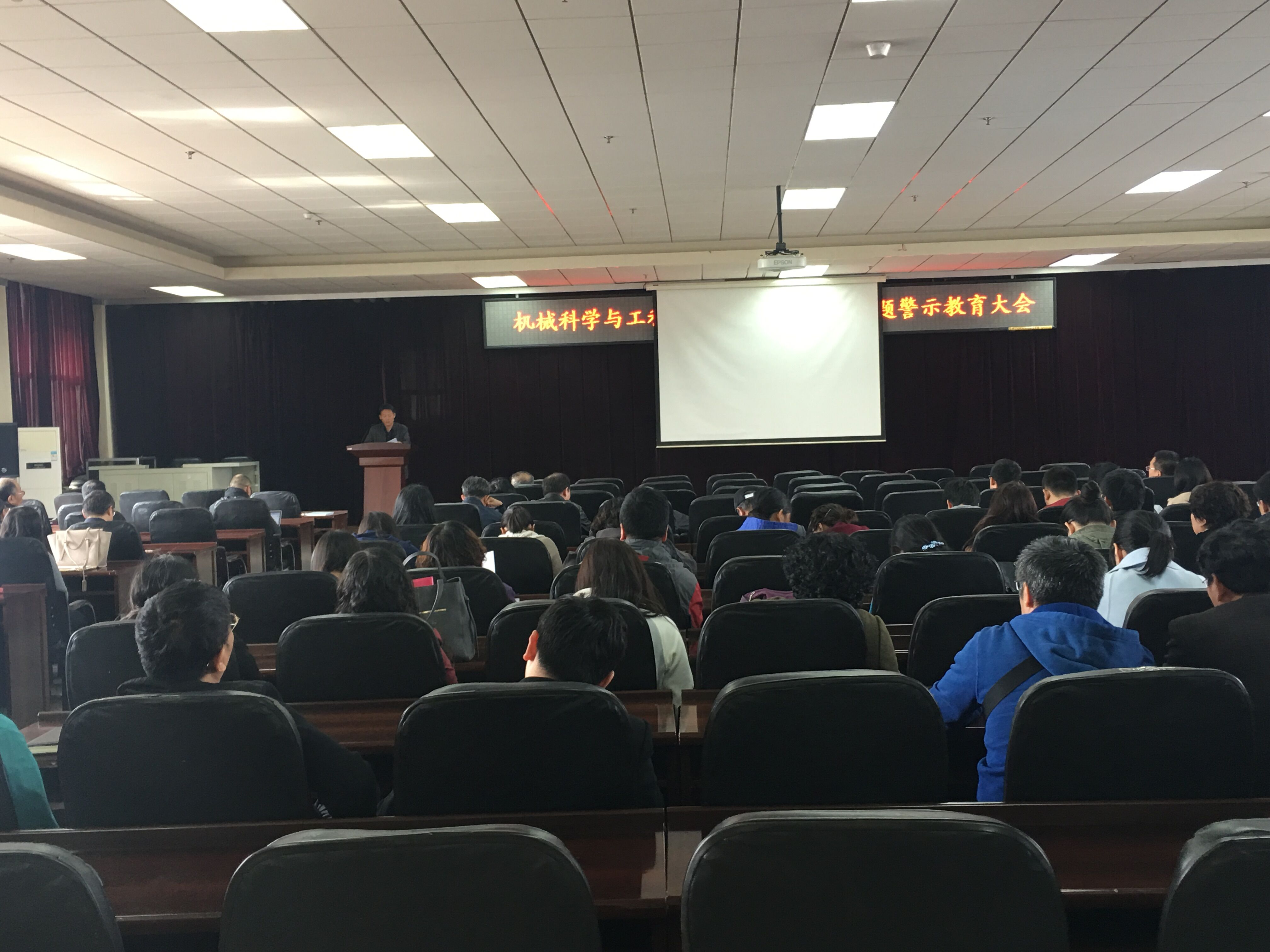 4月26日,机械科学与工程学院在机械馆召开党风廉政建设专题警示教育大会。学院全体教职工参加会议。学院党委副书记兼副院长、纪委书记郑福胜主持会议。 会上,郑福胜传达了学校党委书记杨振斌“不断提高政治站位 始终保持政治韧劲 确保中央八项规定精神在我校落地生根”的讲话精神,宣读了学校党委副书记、纪委书记李忠军在会上所作的吉林大学近期查处的违反中央八项规定精神问题和司法机关查处的违法案件情况通报。
