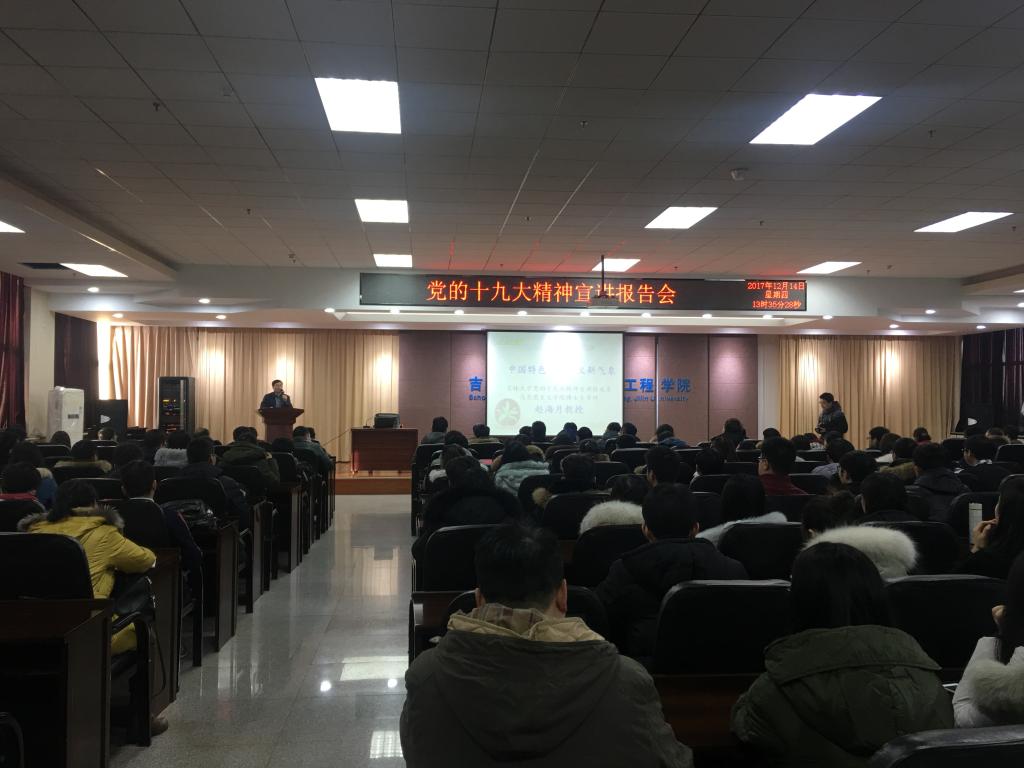 12月14日,机械科学与工程学院党委与材料科学与工程学院党委在机械材料馆联合举办了党的十九大精神宣讲报告会,学院领导班子成员、学生党员代表、民主党派代表和全体教职工党员参加了此次报告会。会议邀请了吉林大学党的十九大精神宣讲团成员、马克思主义学院博士生导师赵海月教授作主题报告。宣讲报告会由我院党委书记程钺主持。