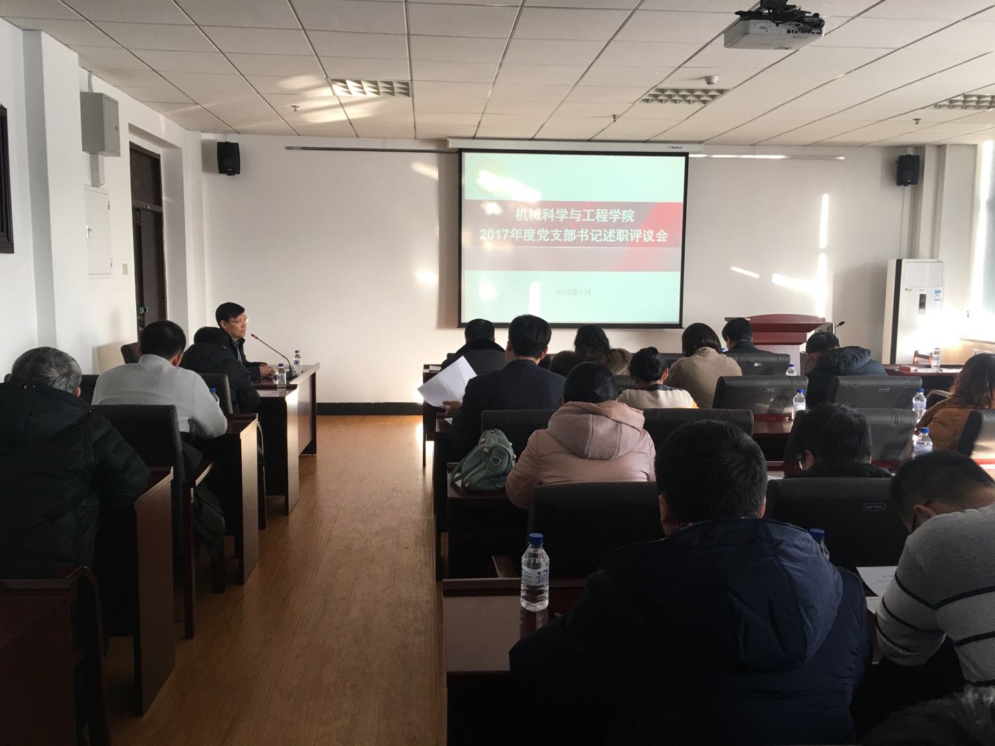 1月19日,机械科学与工程学院党委在机械馆召开了2017年度党支部书记抓基层党建述职评议会议。学院党委委员、纪委委员、行政领导班子成员、全体党支部书记、系(室、中心)主要负责人、党务秘书、党员代表等参加了会议,会议由学院党委书记程钺主持。