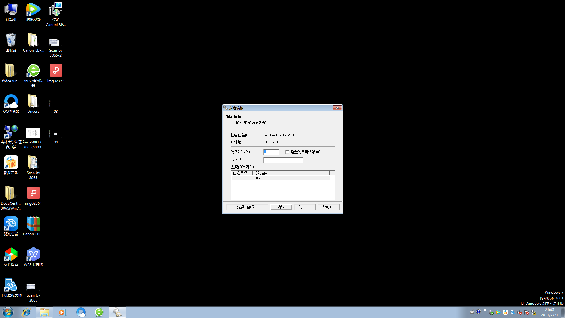 2.选择信箱,如左上角的“001-3065”。