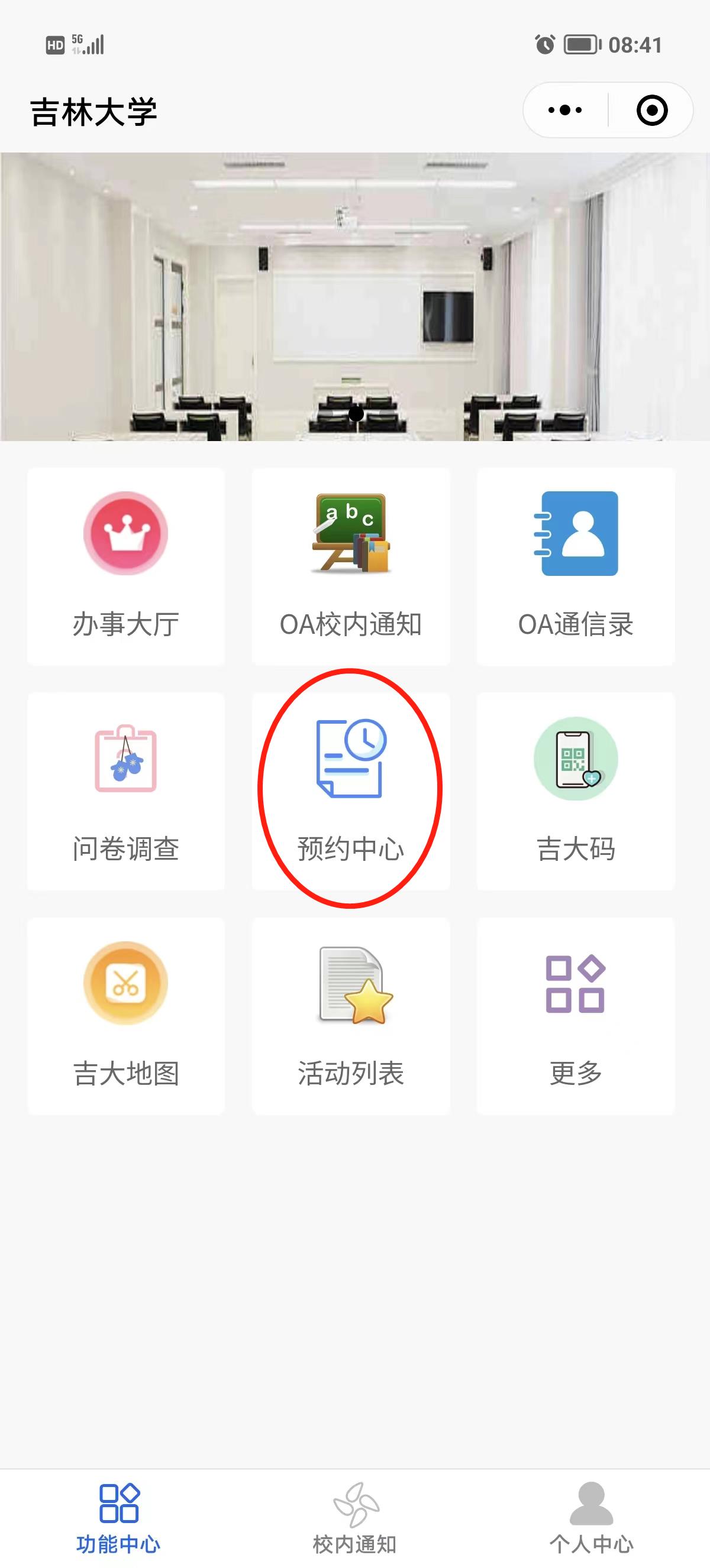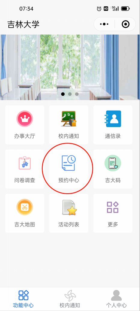如果没有看到“预约中心”图标,请点击右下方“更多”图标浏览。