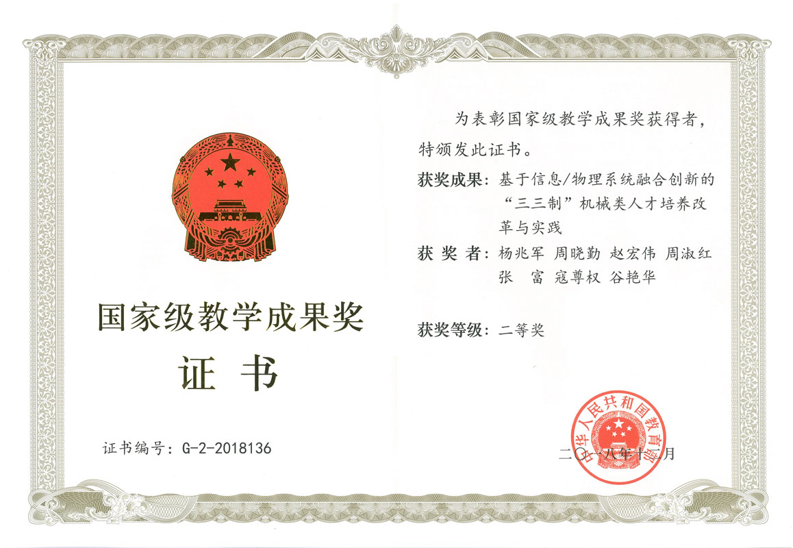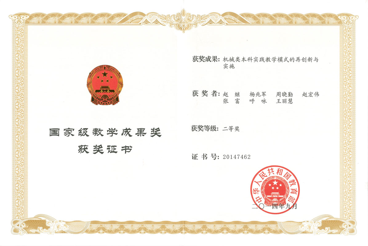 “机械工程”专业入选国家首批“卓越工程师”教育培养计划,获批国家首批专业综合改革试点专业,2012年、2018年连续通过有效期为6年的全国工程教育专业认证,2019年被认定为国家级一流本科专业建设点。